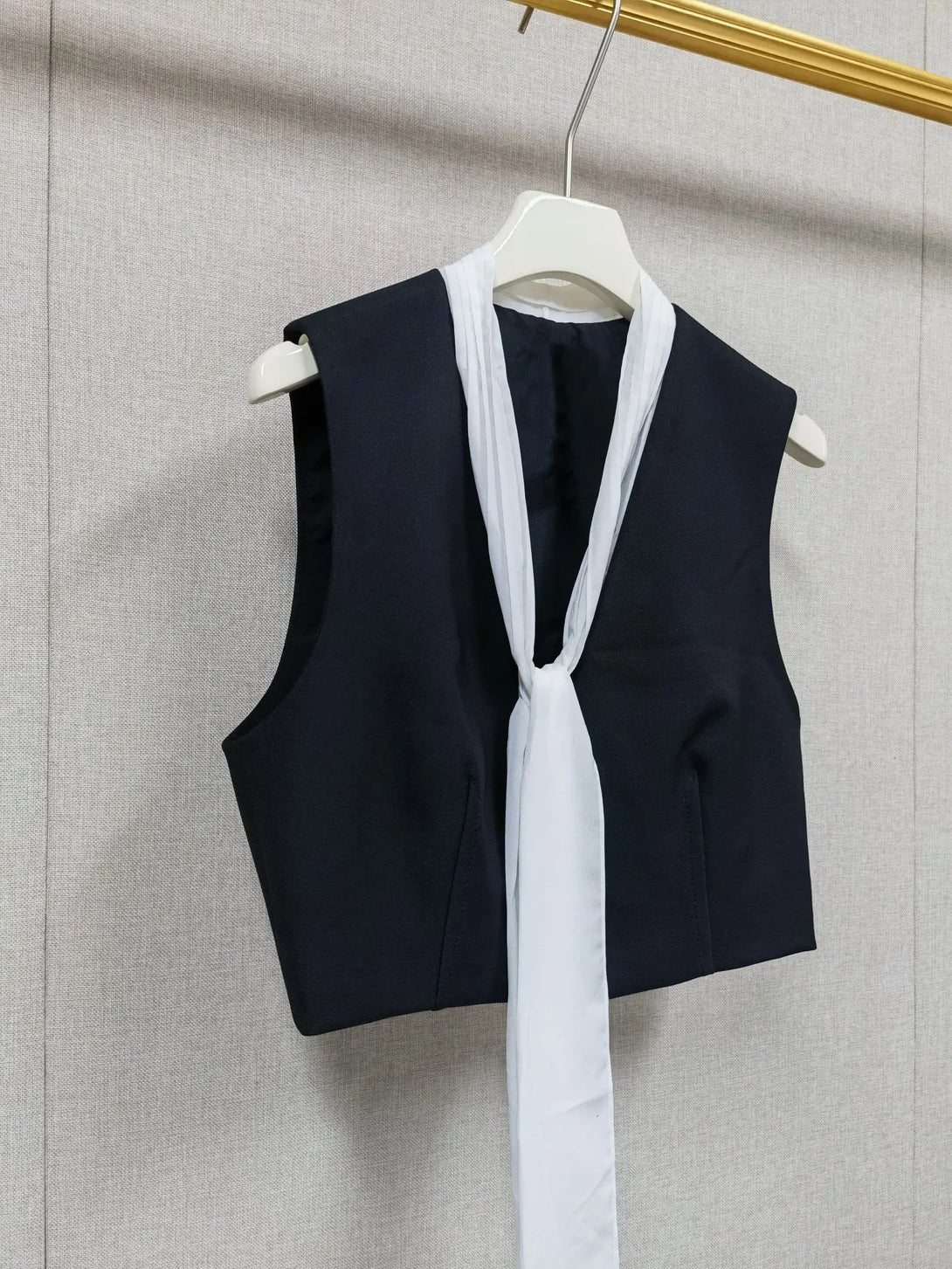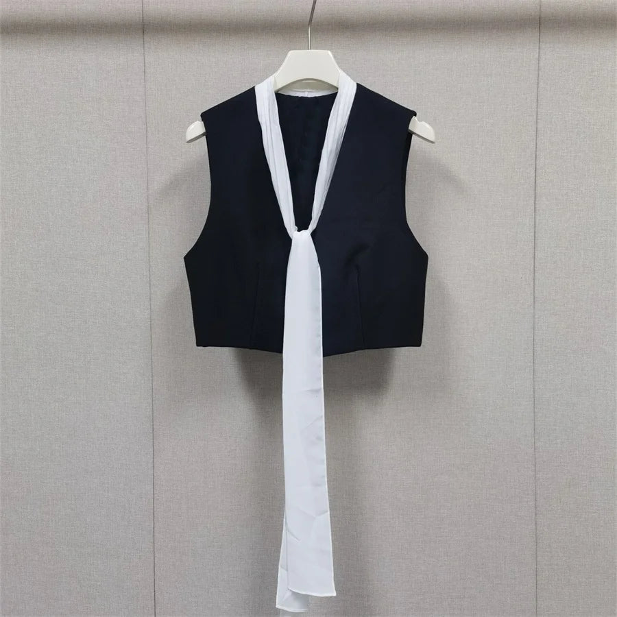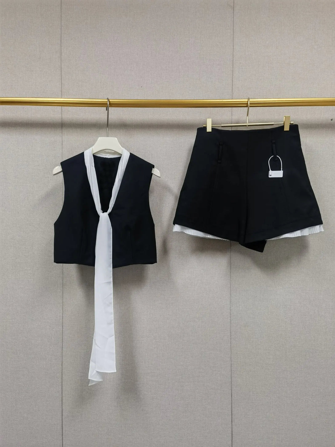 Bowknot Sleeveless Casual Vest & Mini Shorts Sets