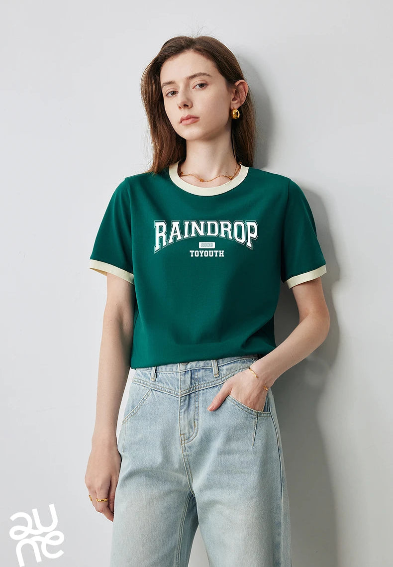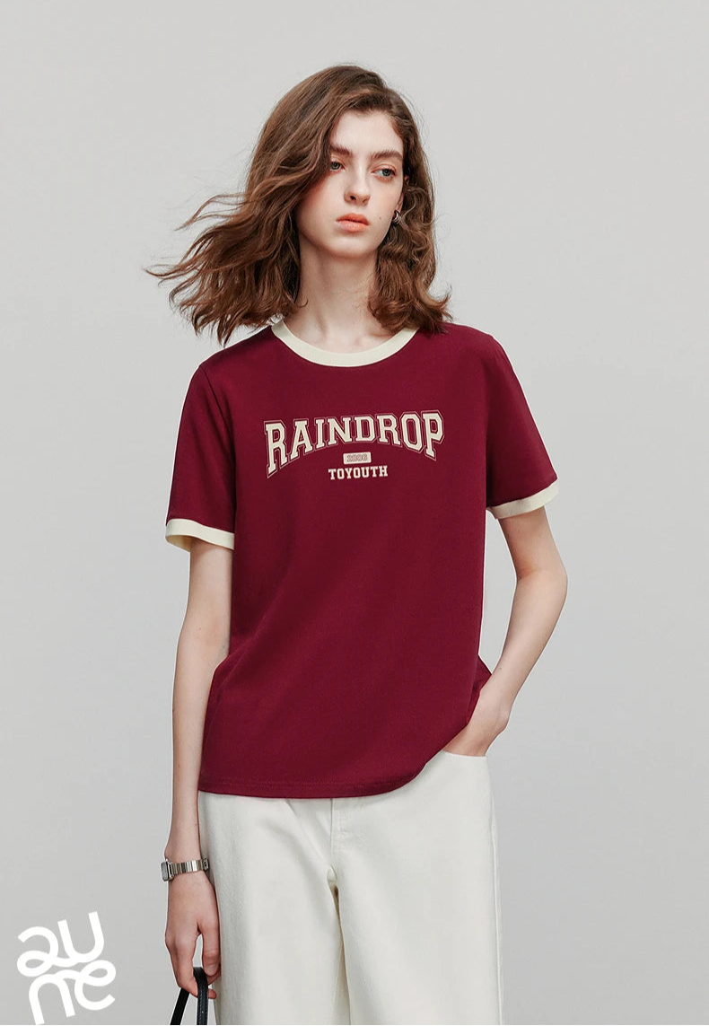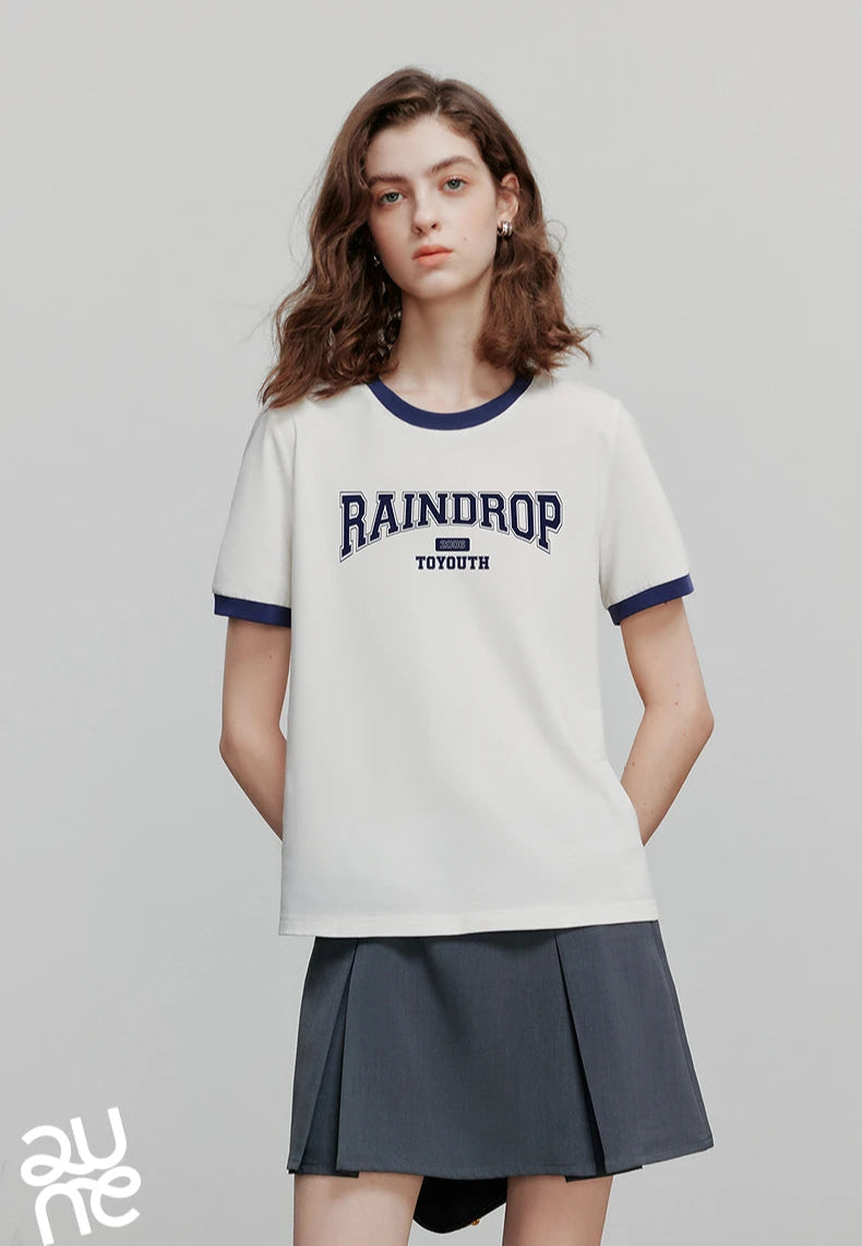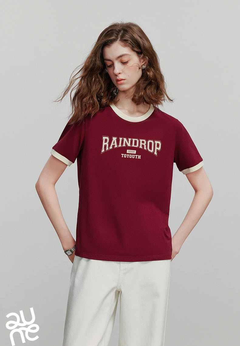 Color Blocked Letter Short Sleeve T-Shirt