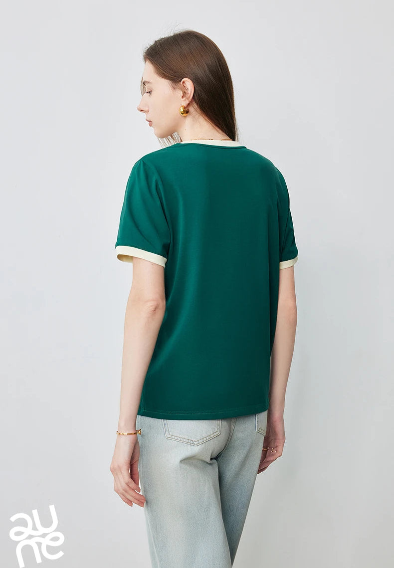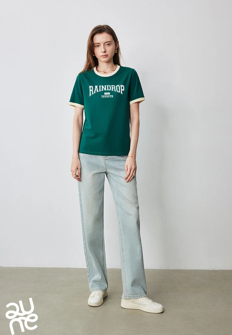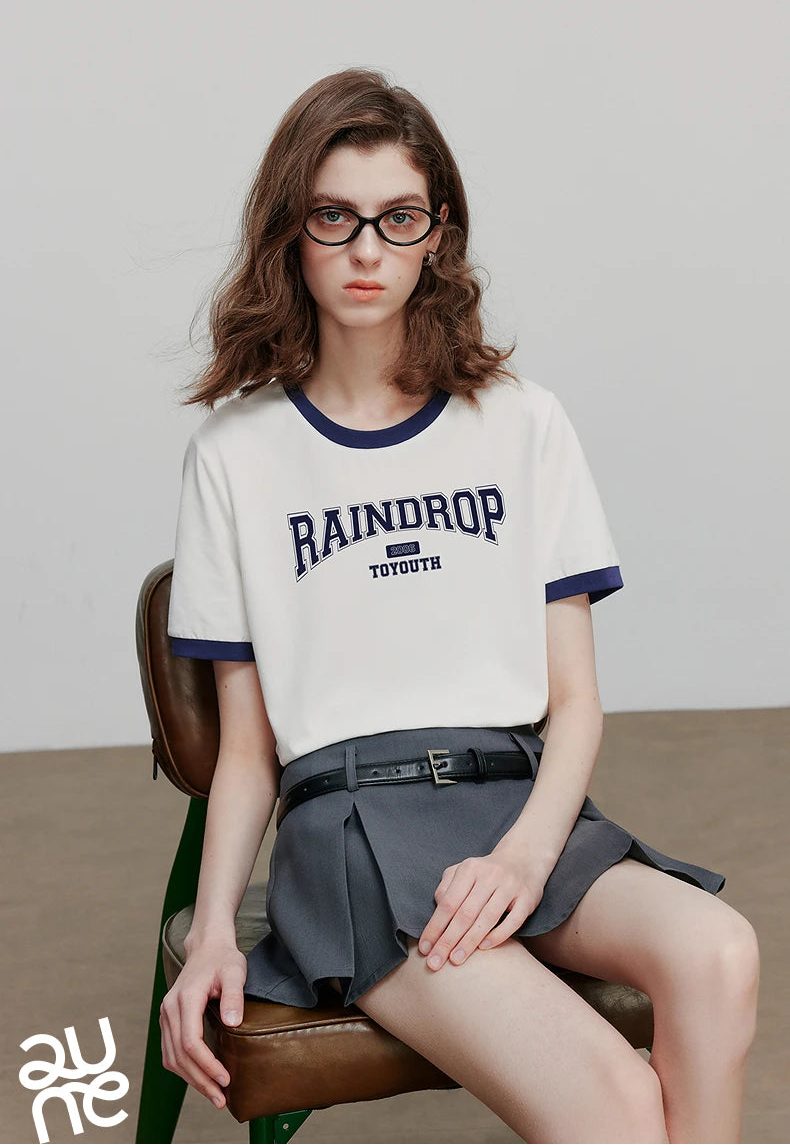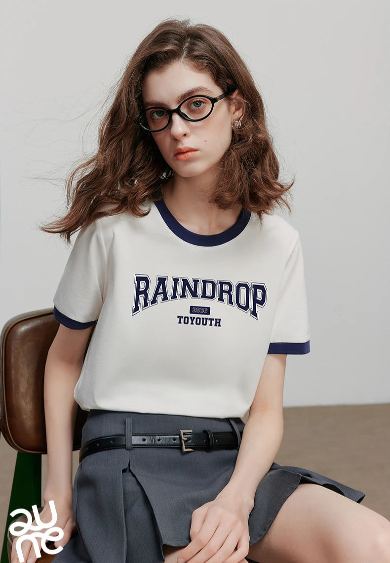 Color Blocked Letter Short Sleeve T-Shirt