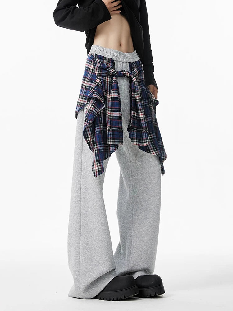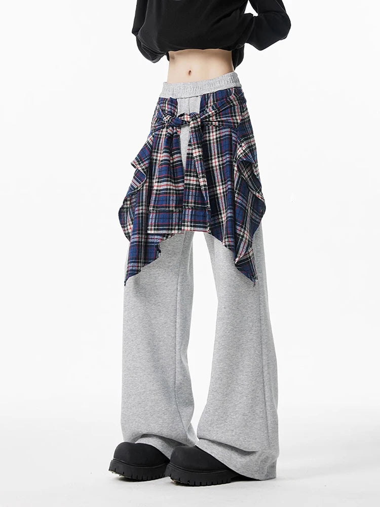 Plaid Patchwork Baggy Vintage Wide Pants