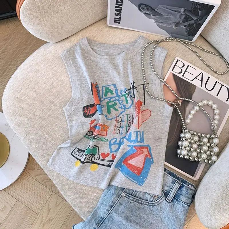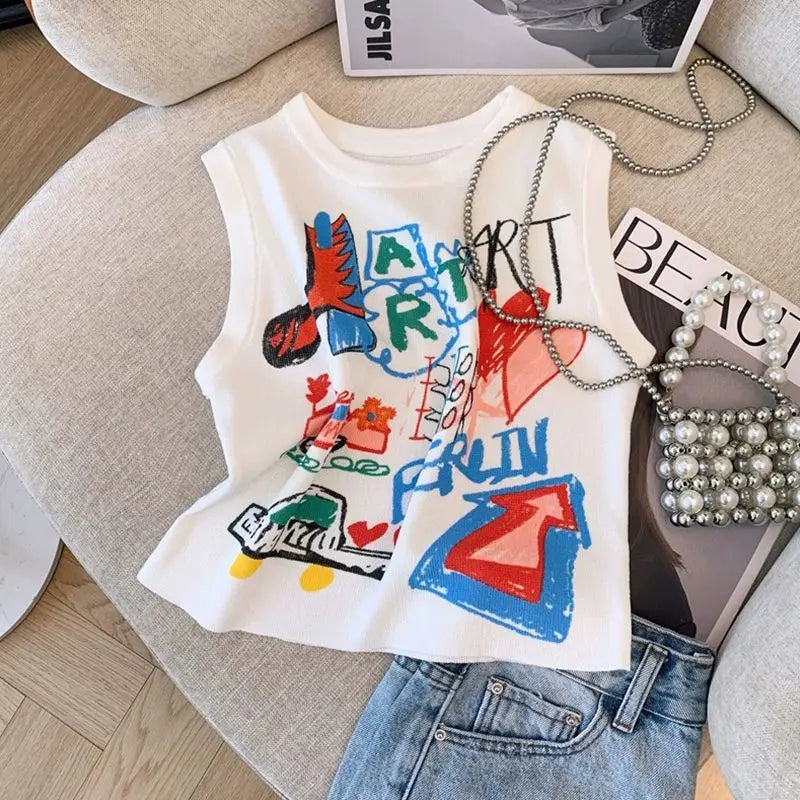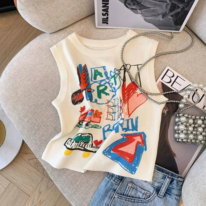 Hand Painted Y2K Vintage Sleeveless Tank Top