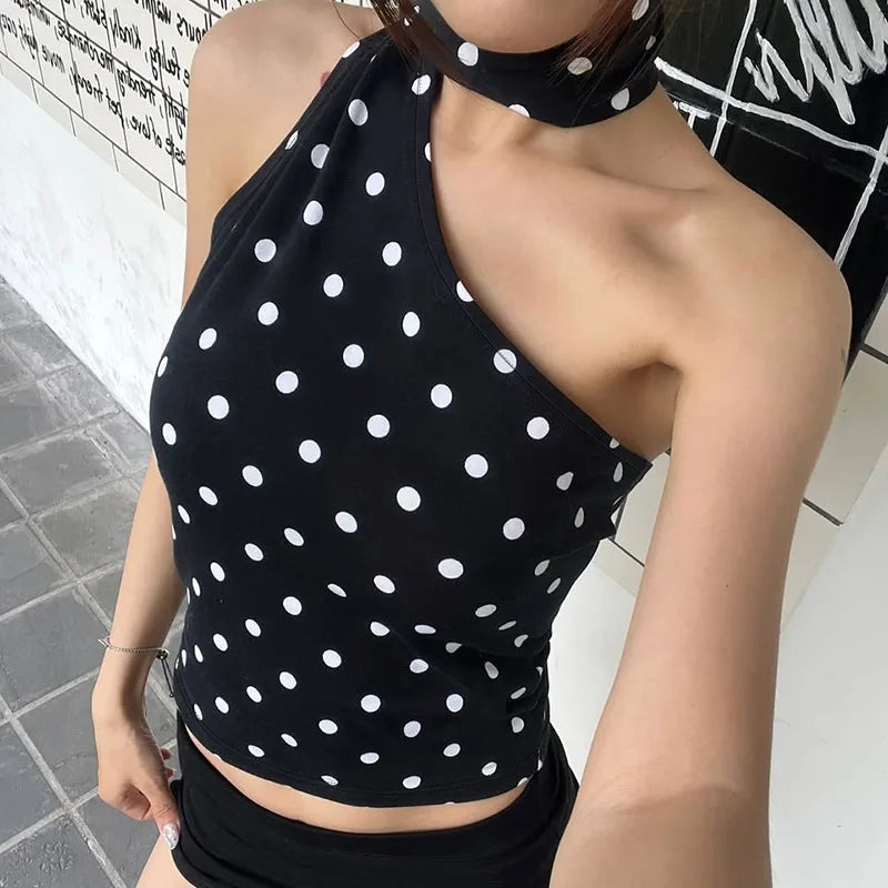 Ribboned Polka Dot Halter Top