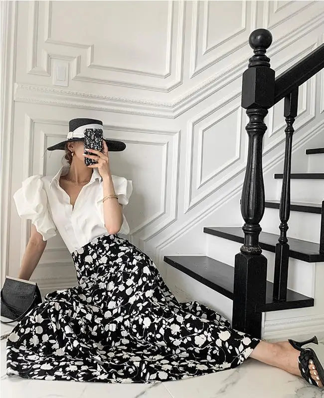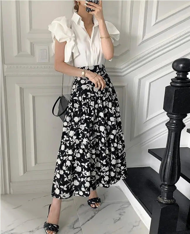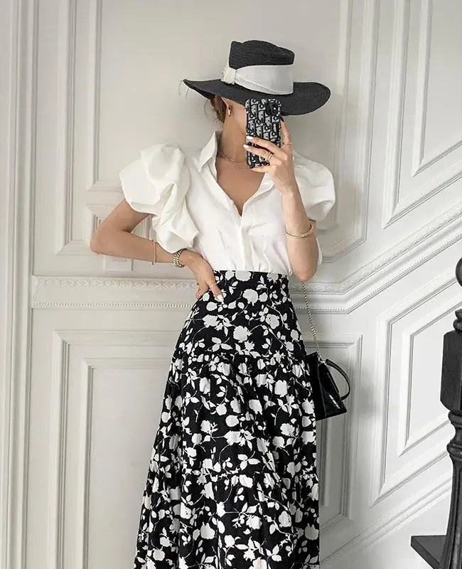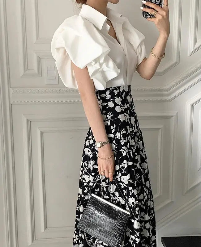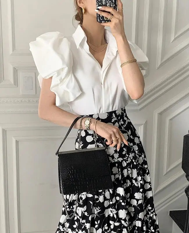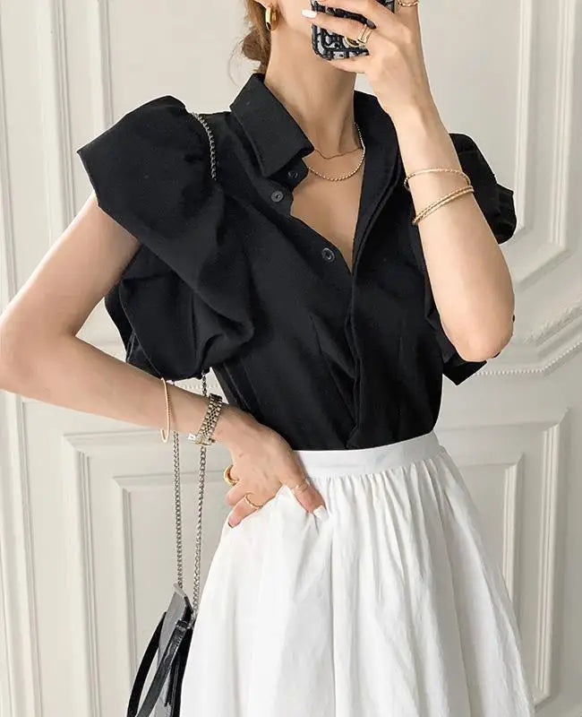 Elegant Slim Fit Short Puff Sleeve Blouse