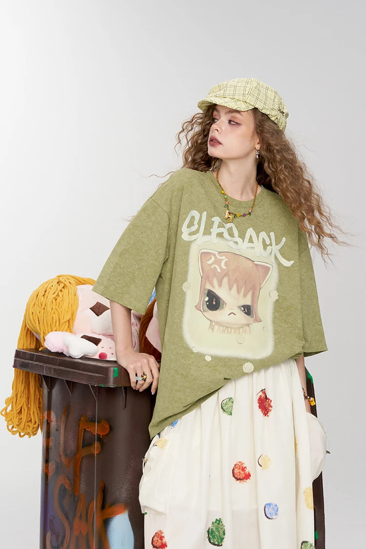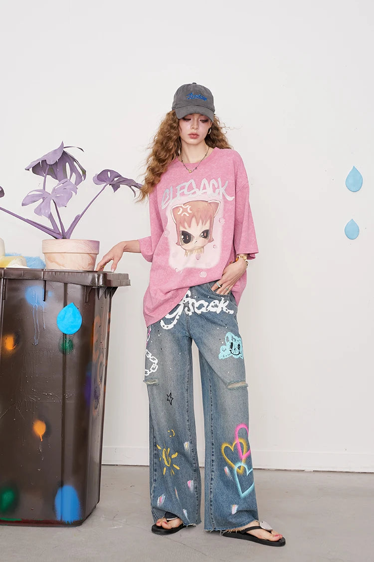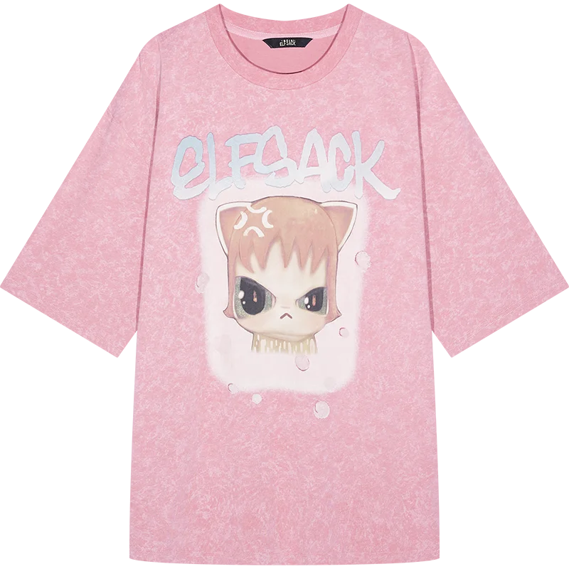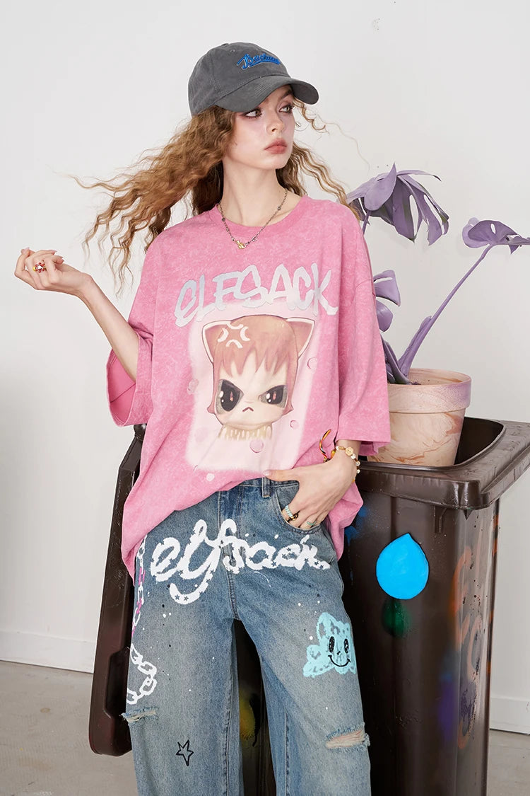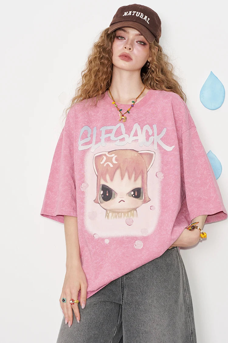Whimsical Pink Cartoon Print T-Shirt