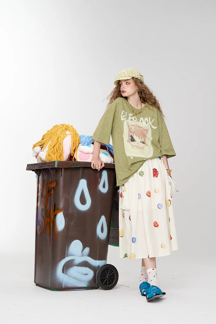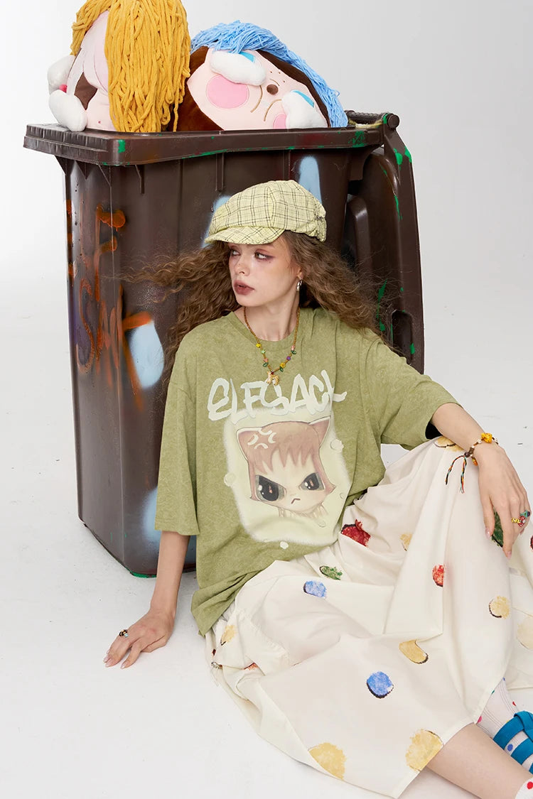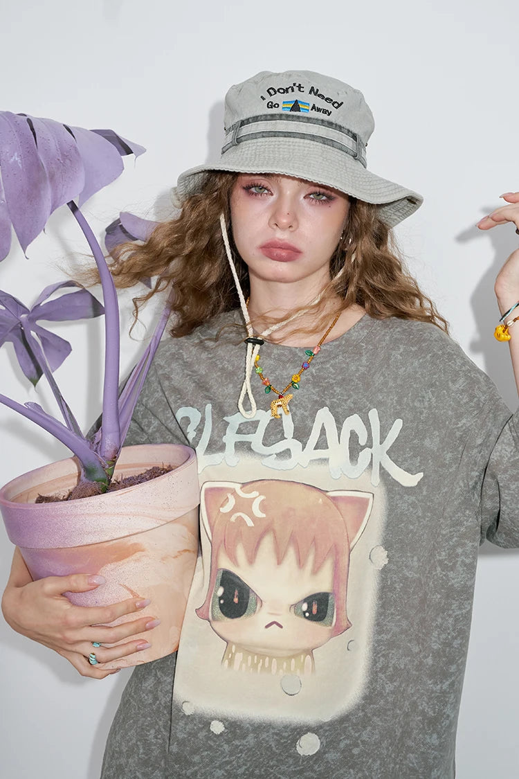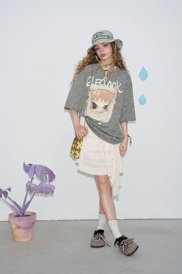 Whimsical Pink Cartoon Print T-Shirt