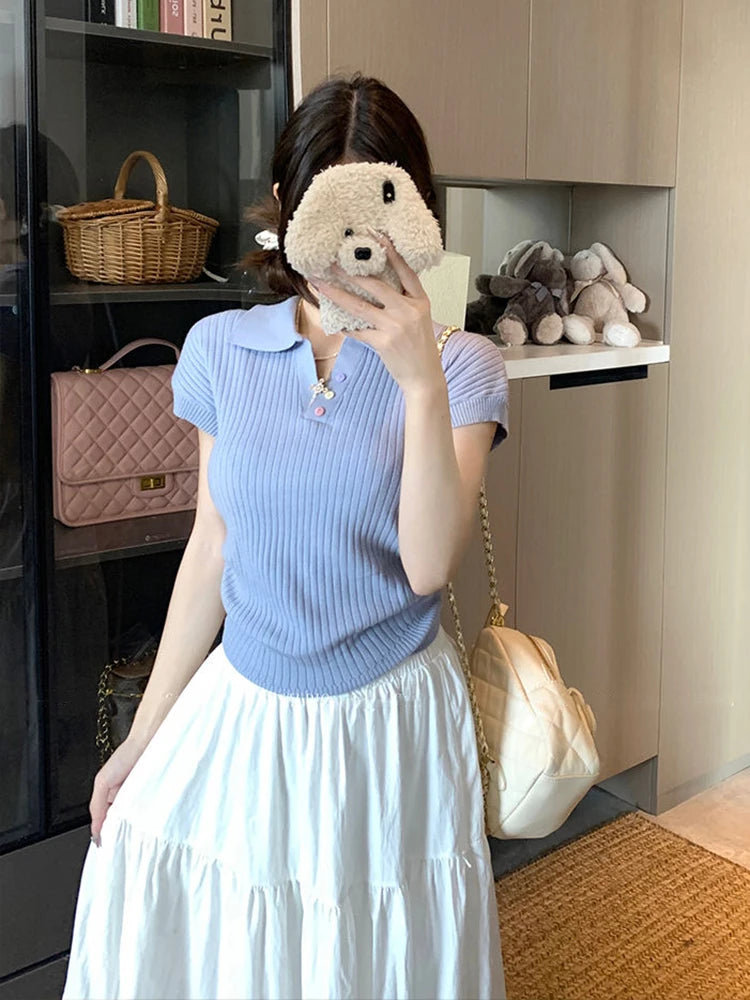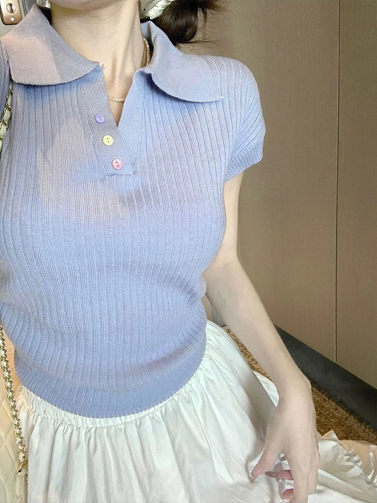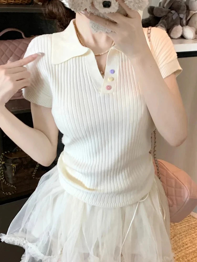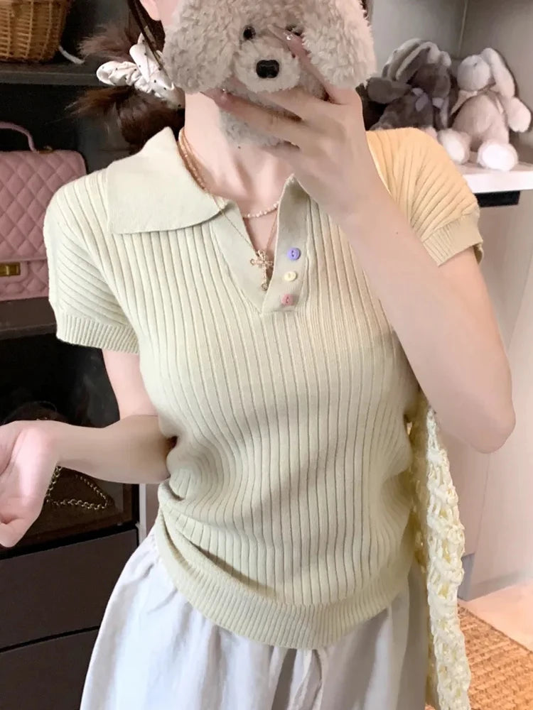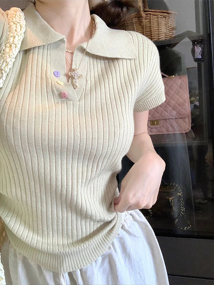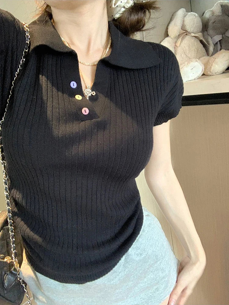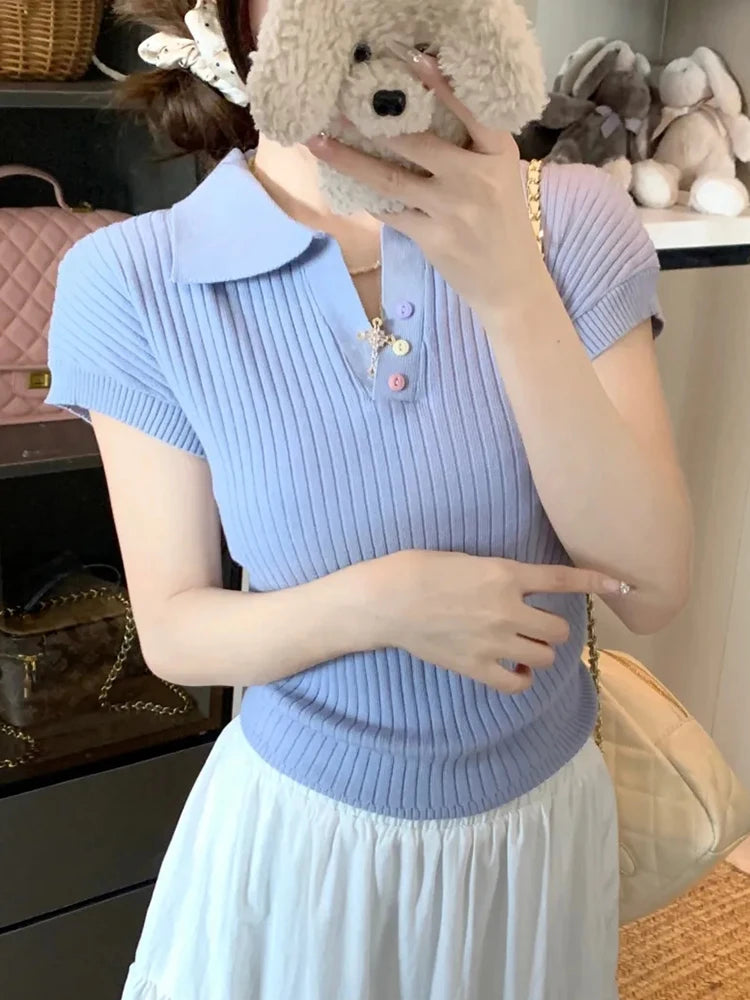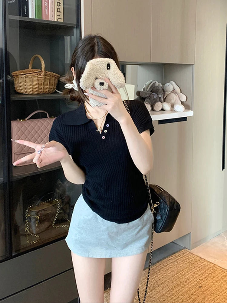 Chic Pleated Lapel T-Shirt