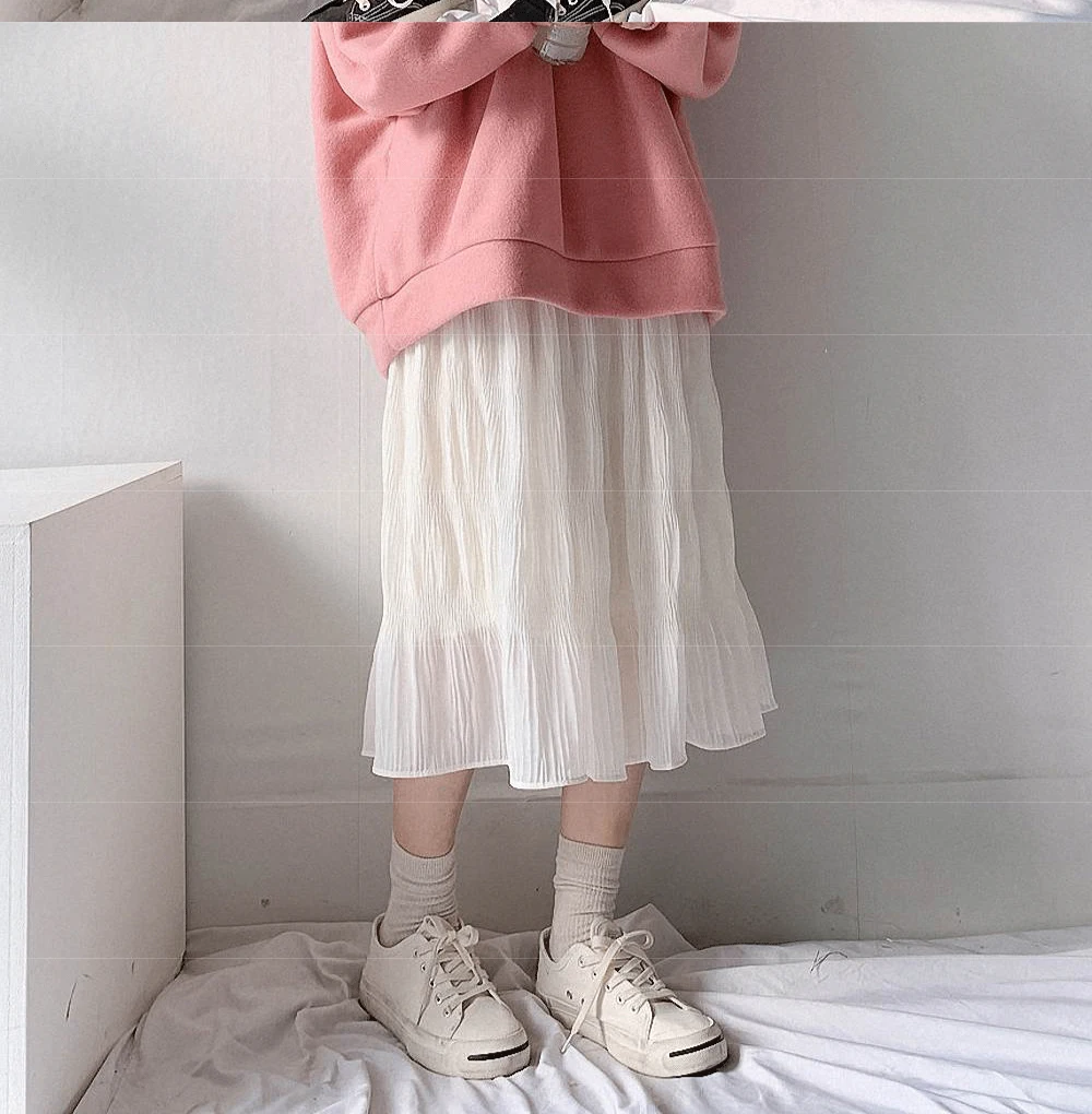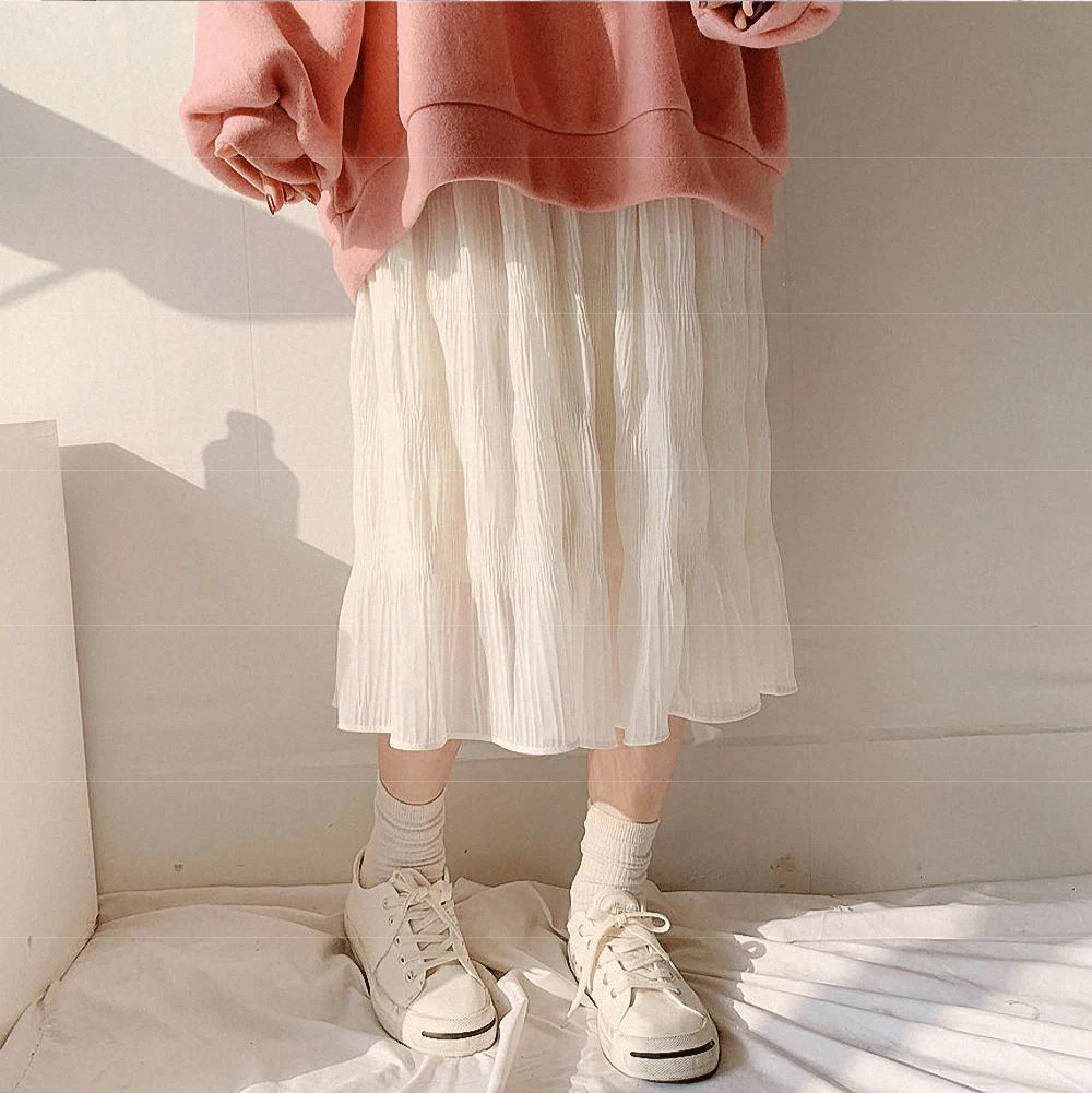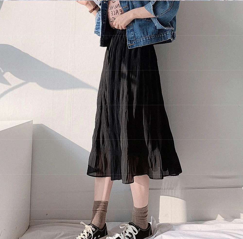 Falda plisada de diseño corto pequeño de 150 cm, falda de gasa suave de corte A para mujer, falda de gasa de hada de cintura alta, longitud media