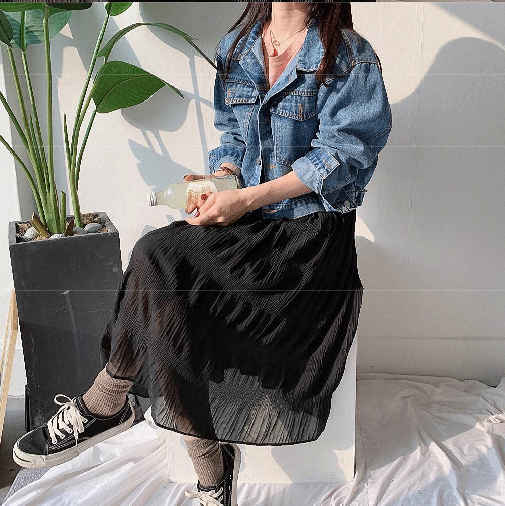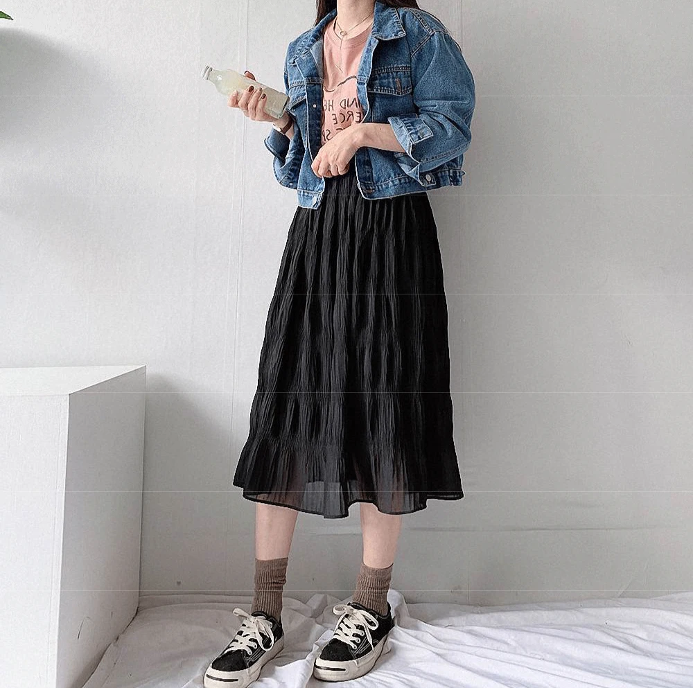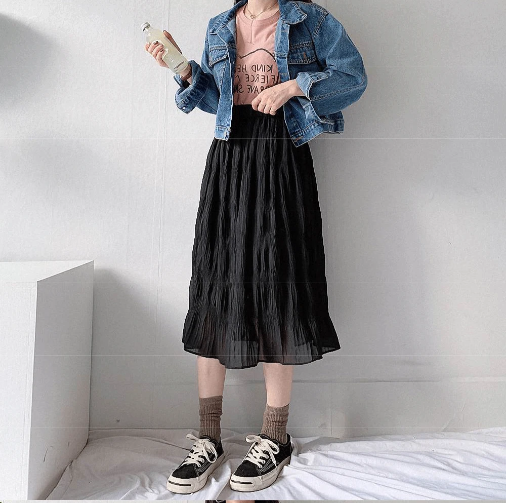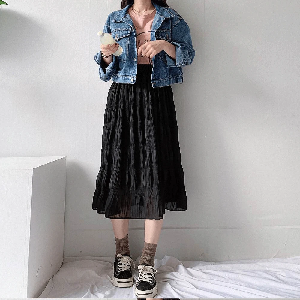 Falda plisada de diseño corto pequeño de 150 cm, falda de gasa suave de corte A para mujer, falda de gasa de hada de cintura alta, longitud media