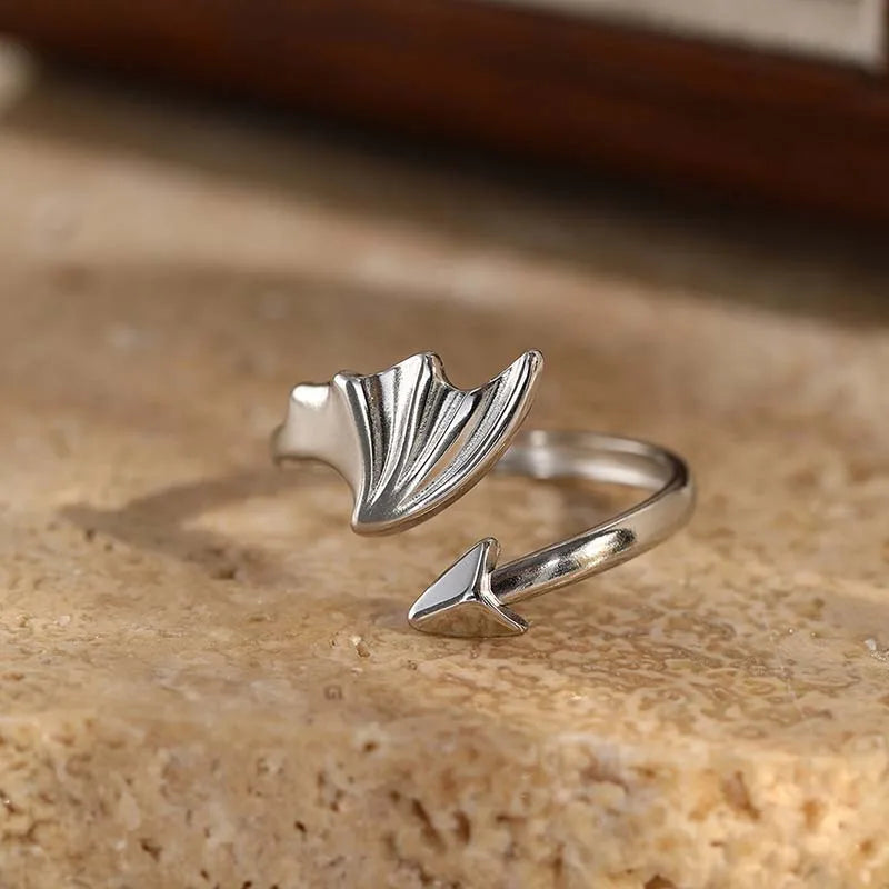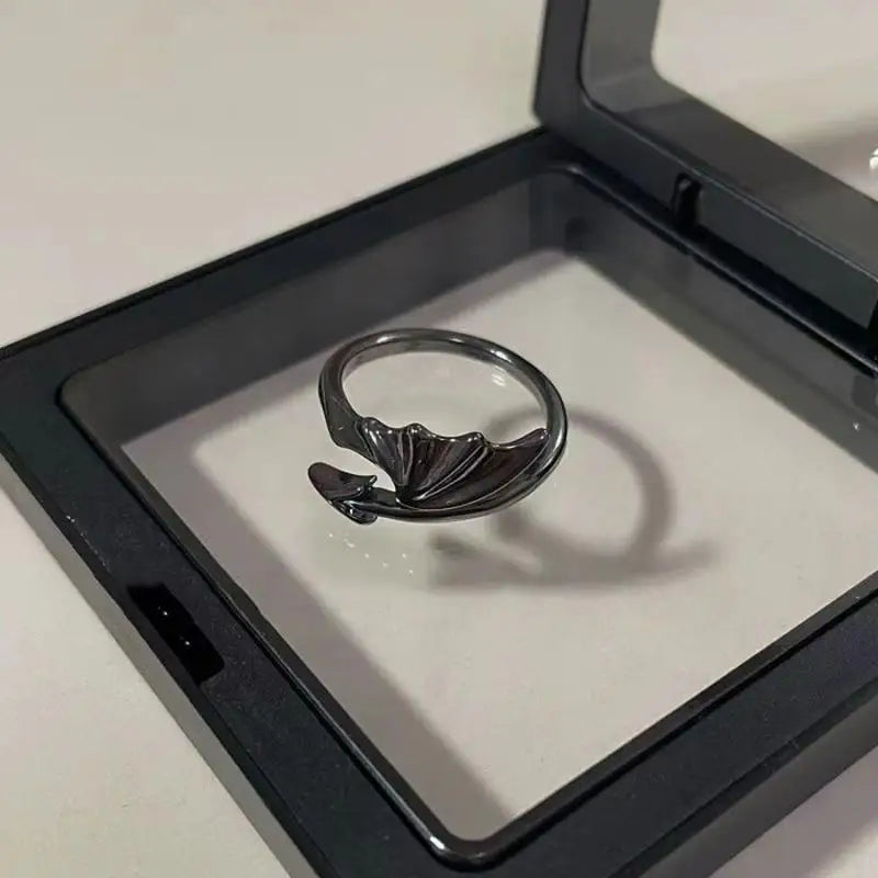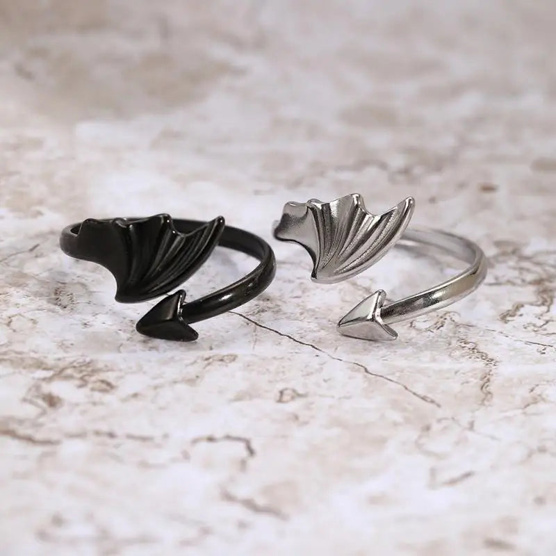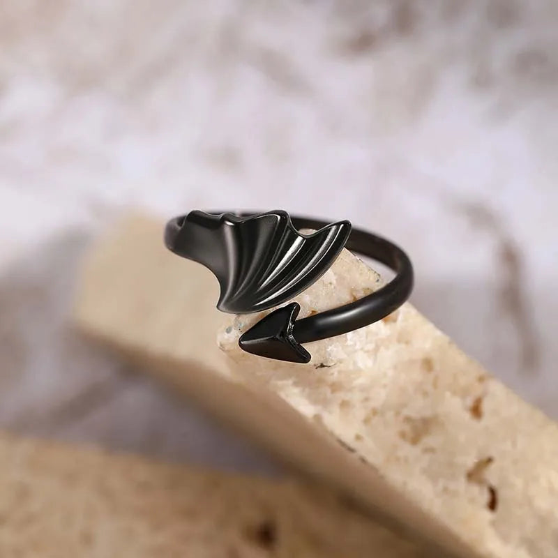 Black Geometric Devil Wings Stainless Ring