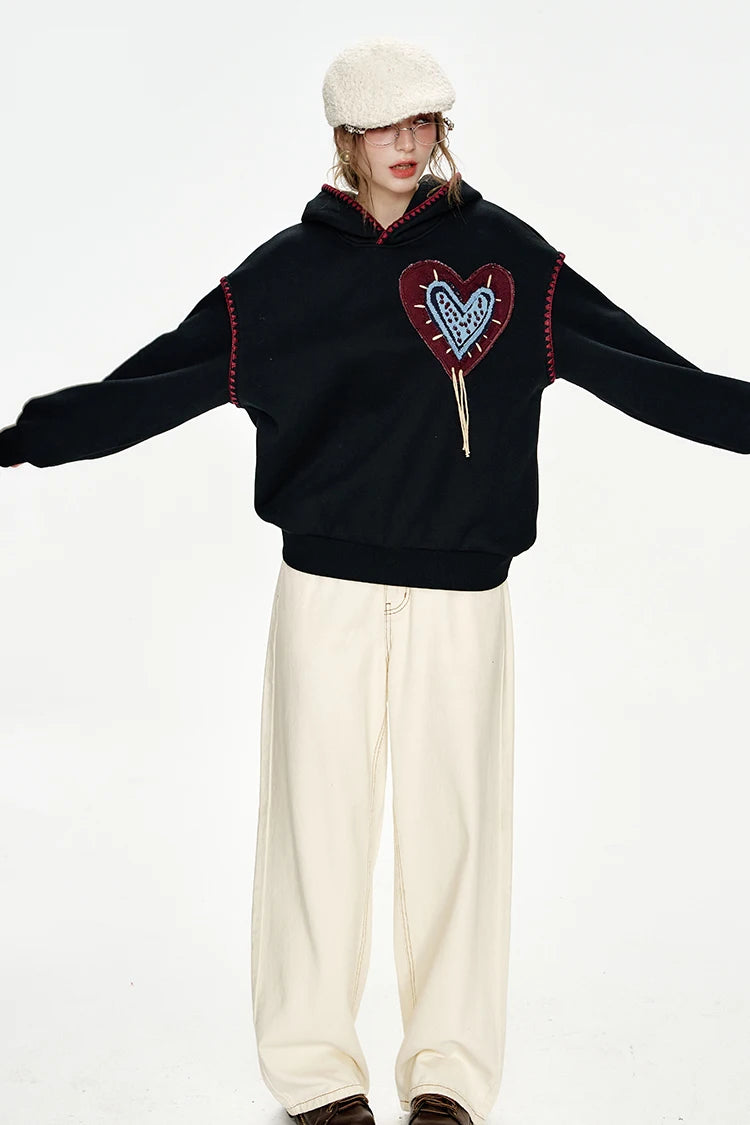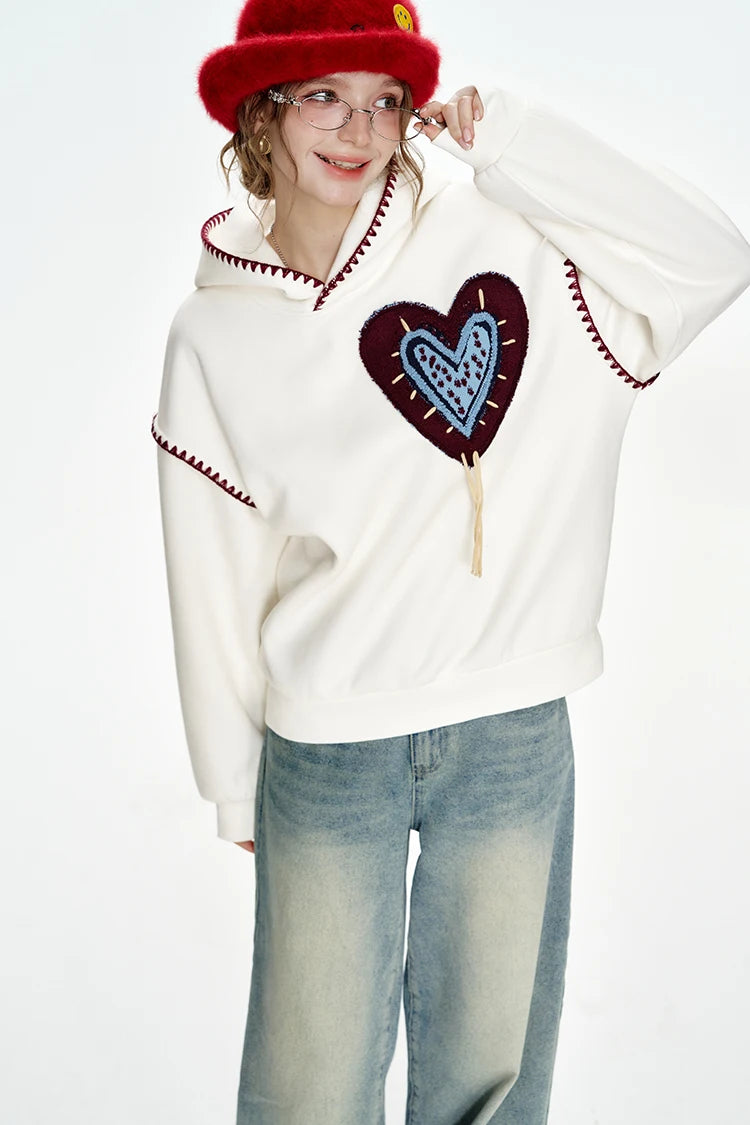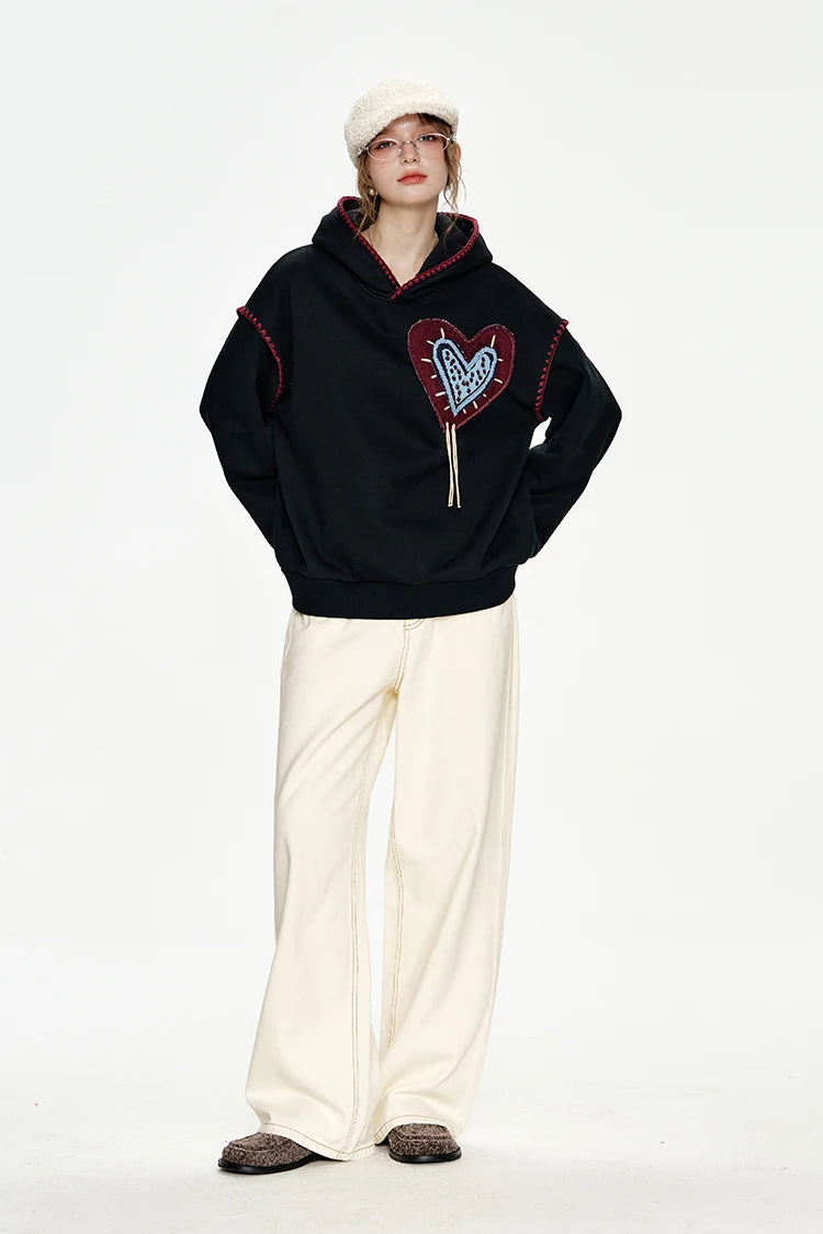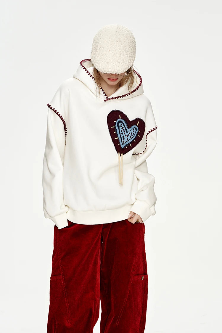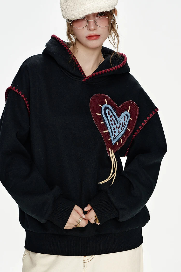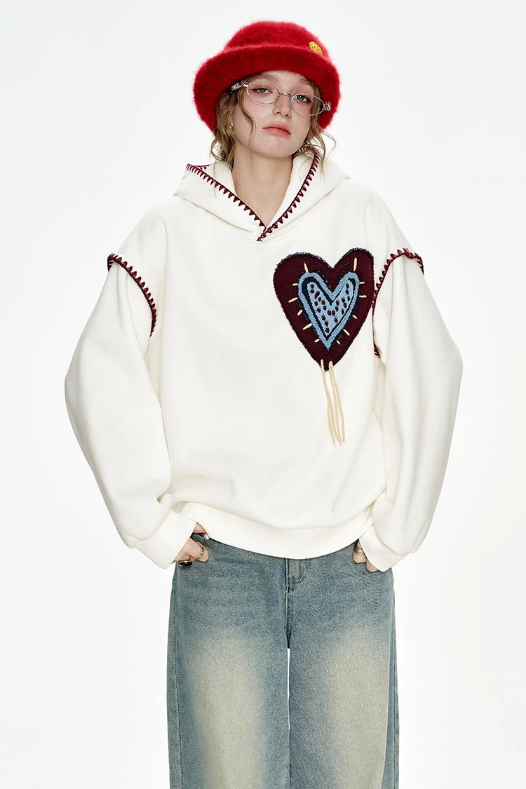 Cozy Stitched Heart Hoodie
