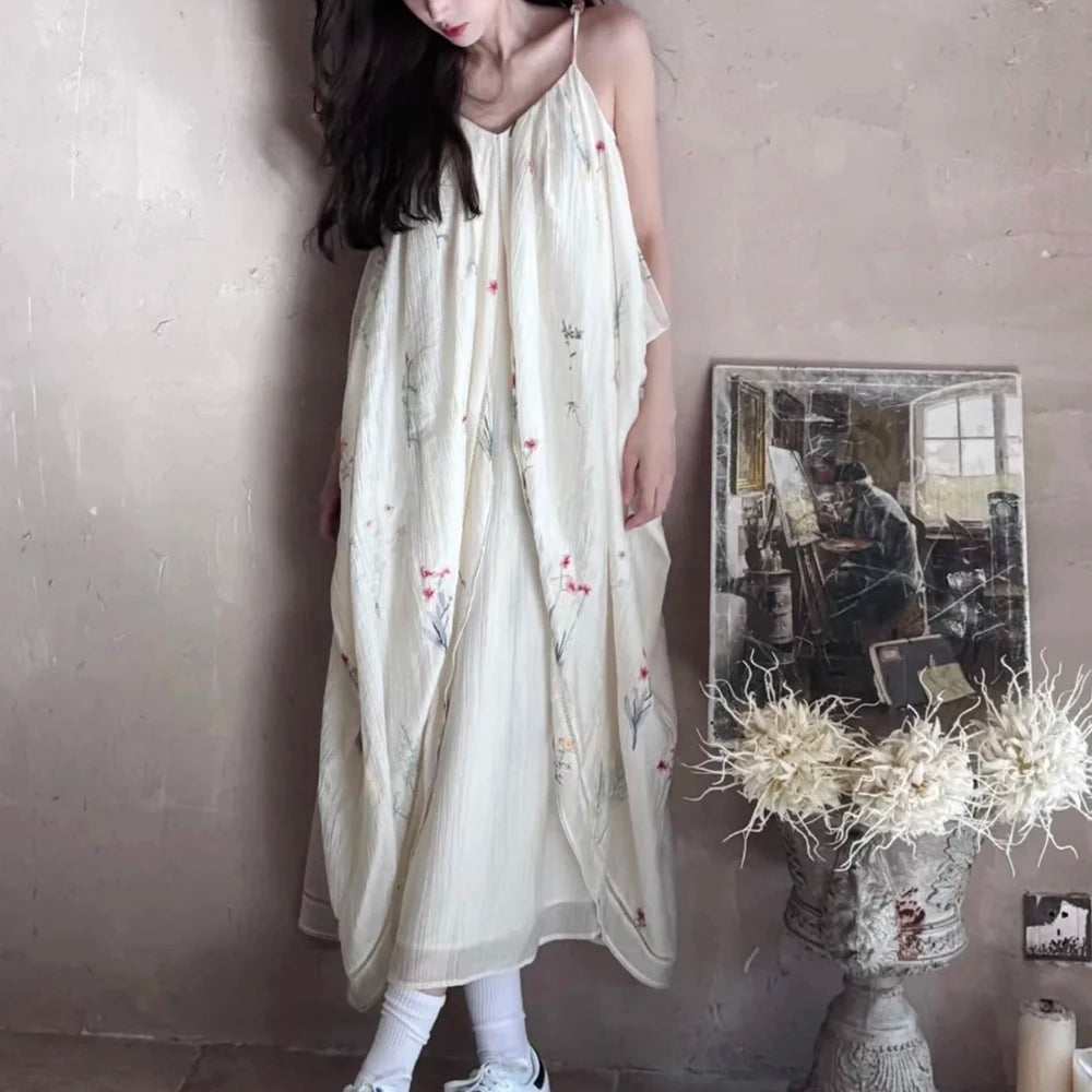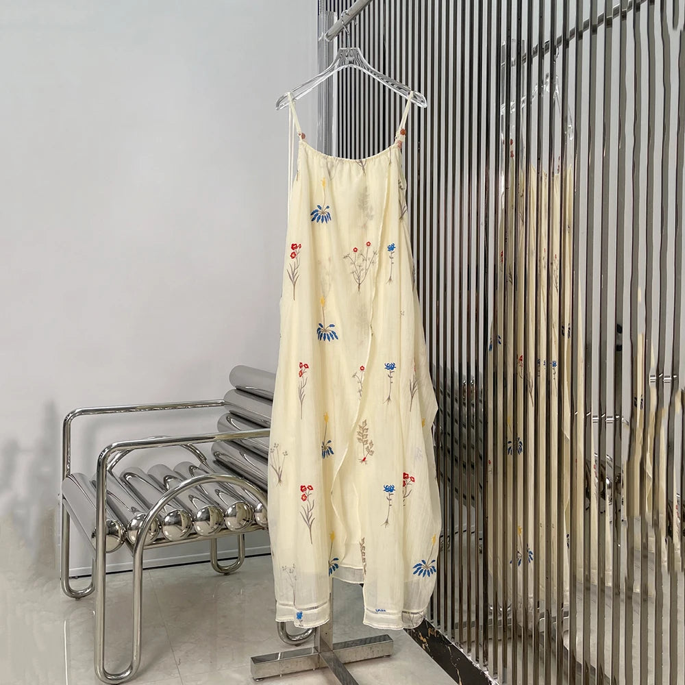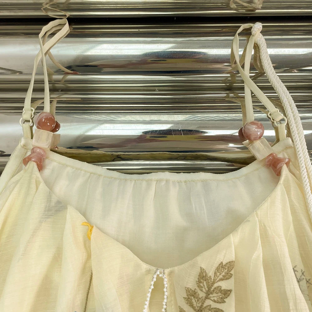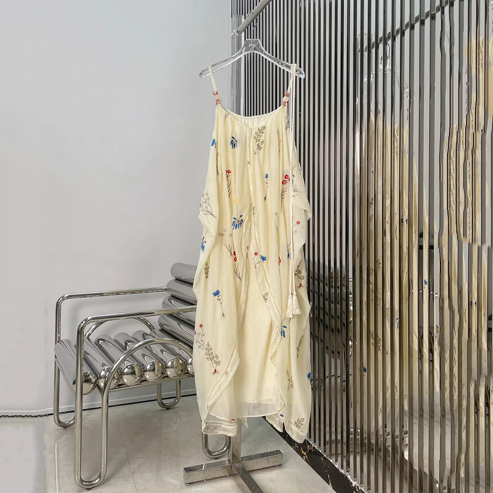 Elegant Botanical Embroidery Beaded Tassel Dress