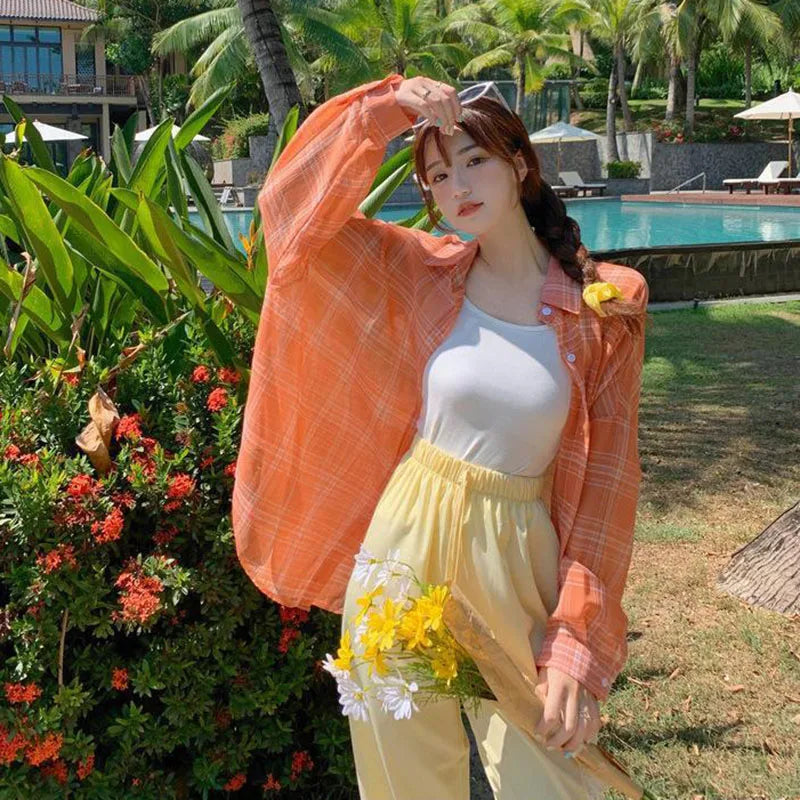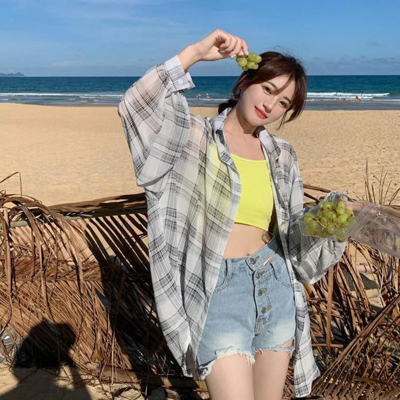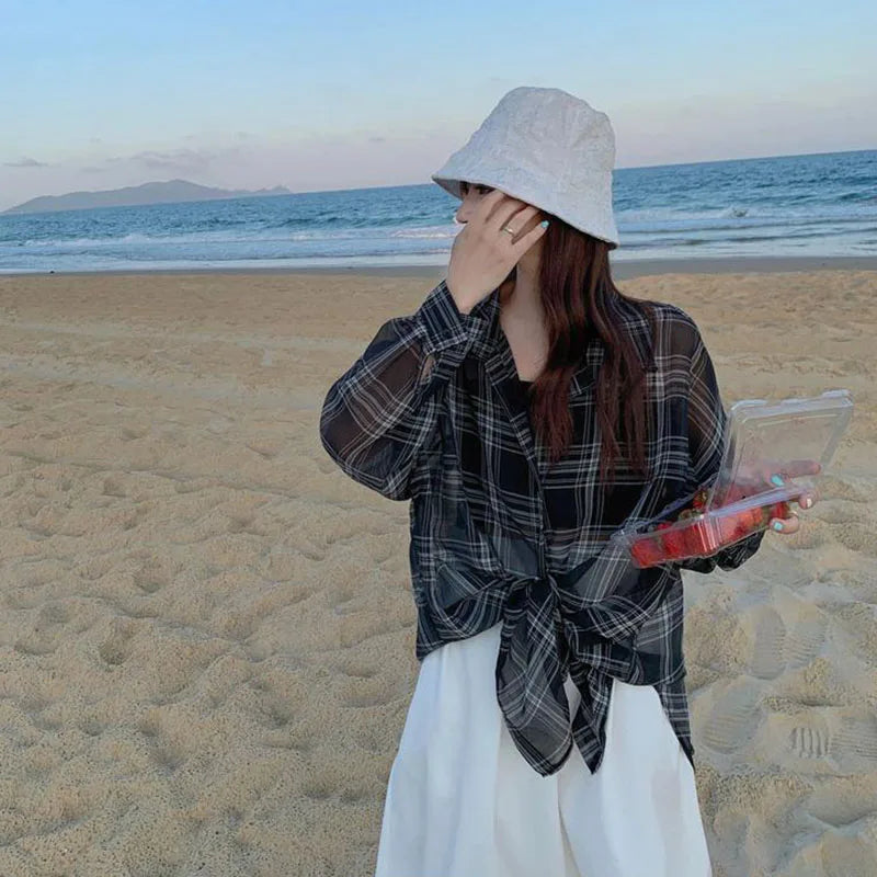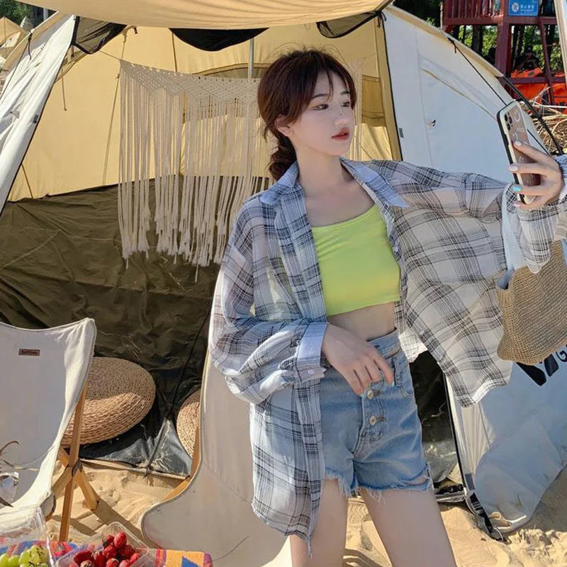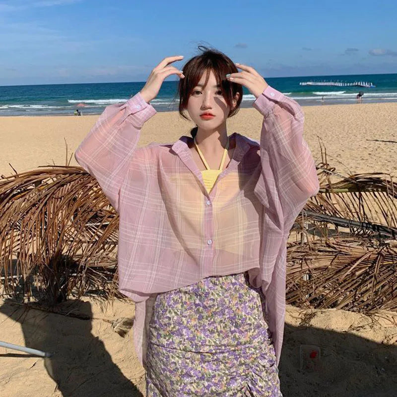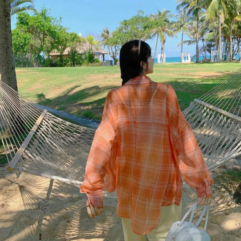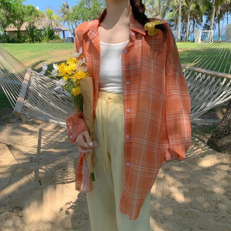 Lightweight Plaid Chiffon Shirt