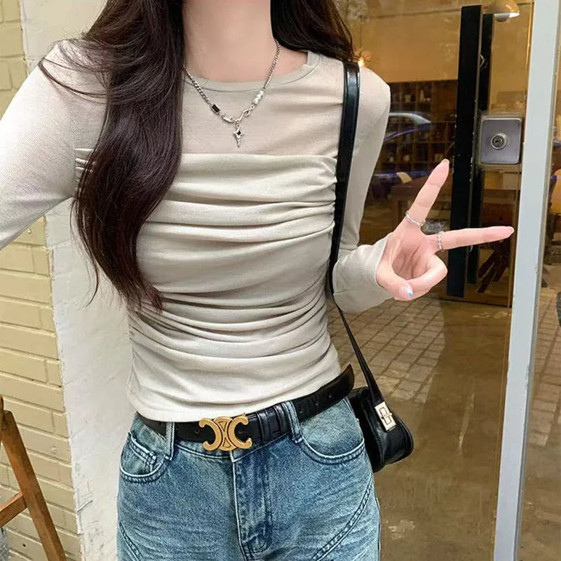 Long Sleeve Mesh Folded Top