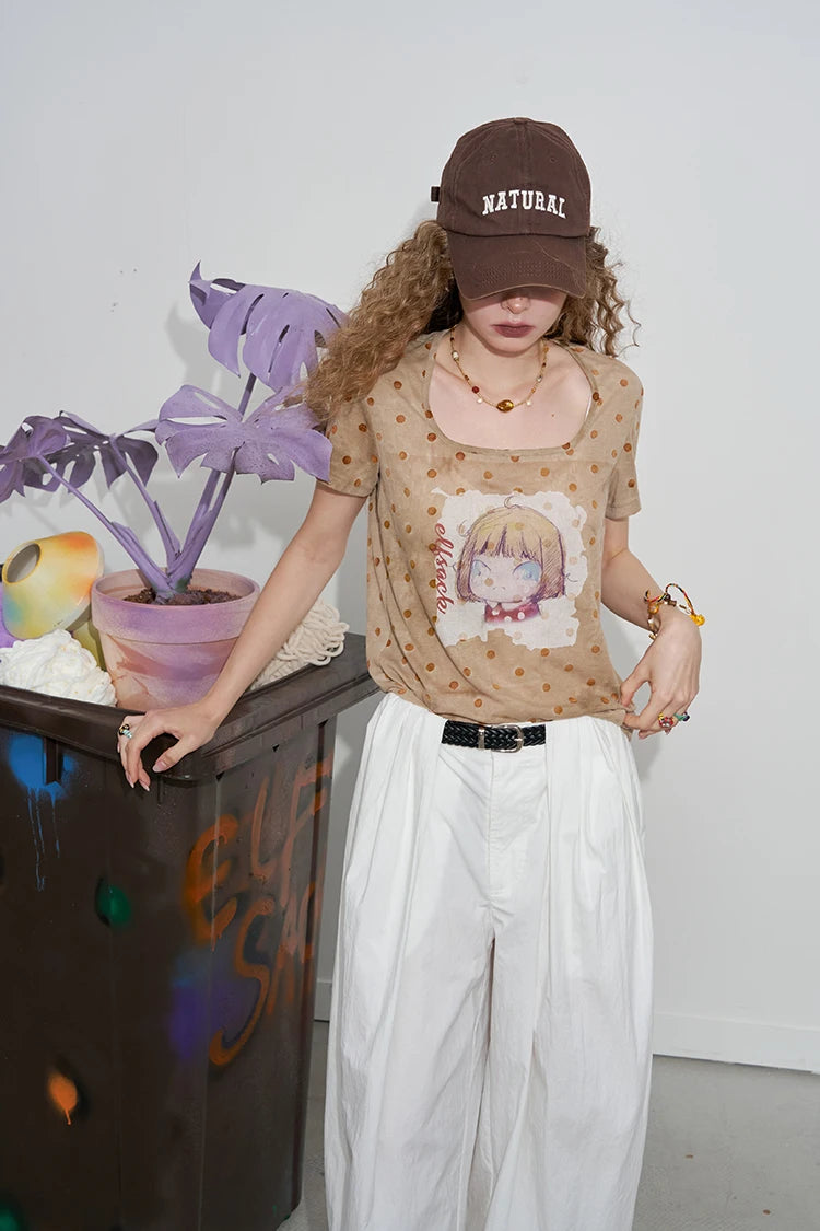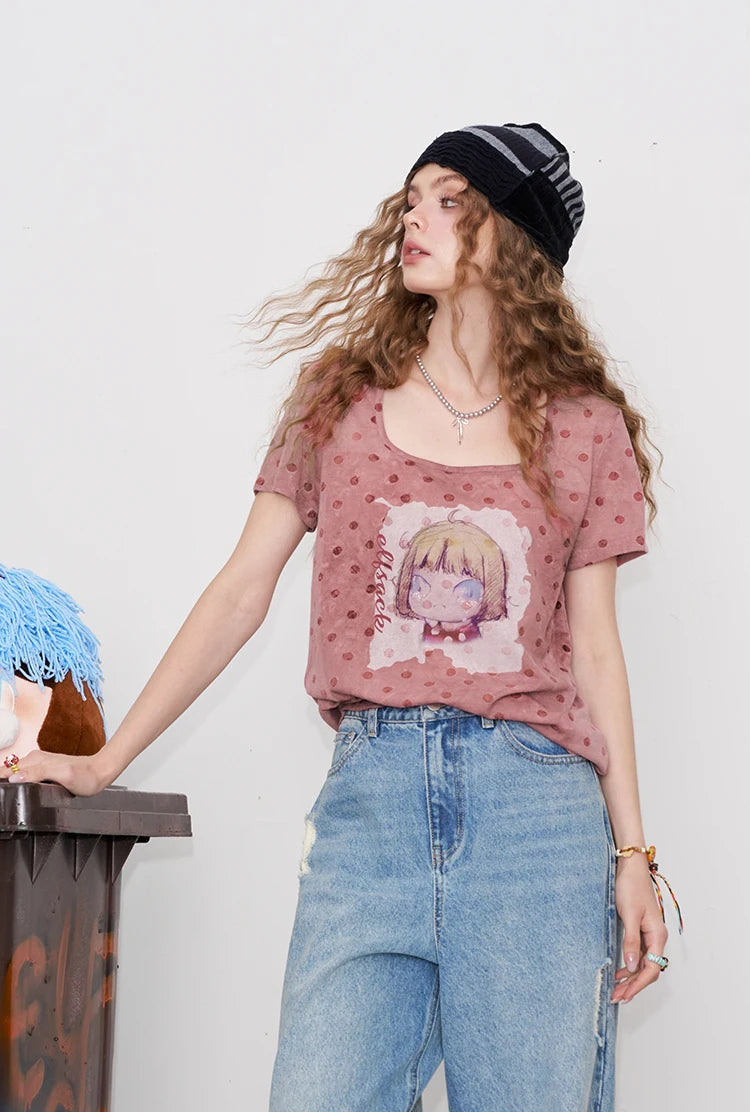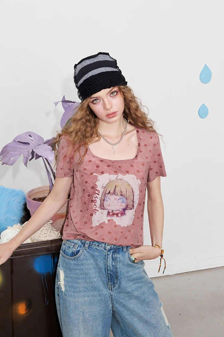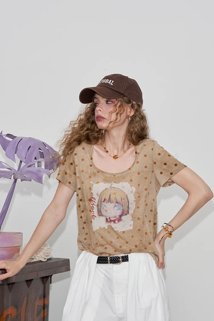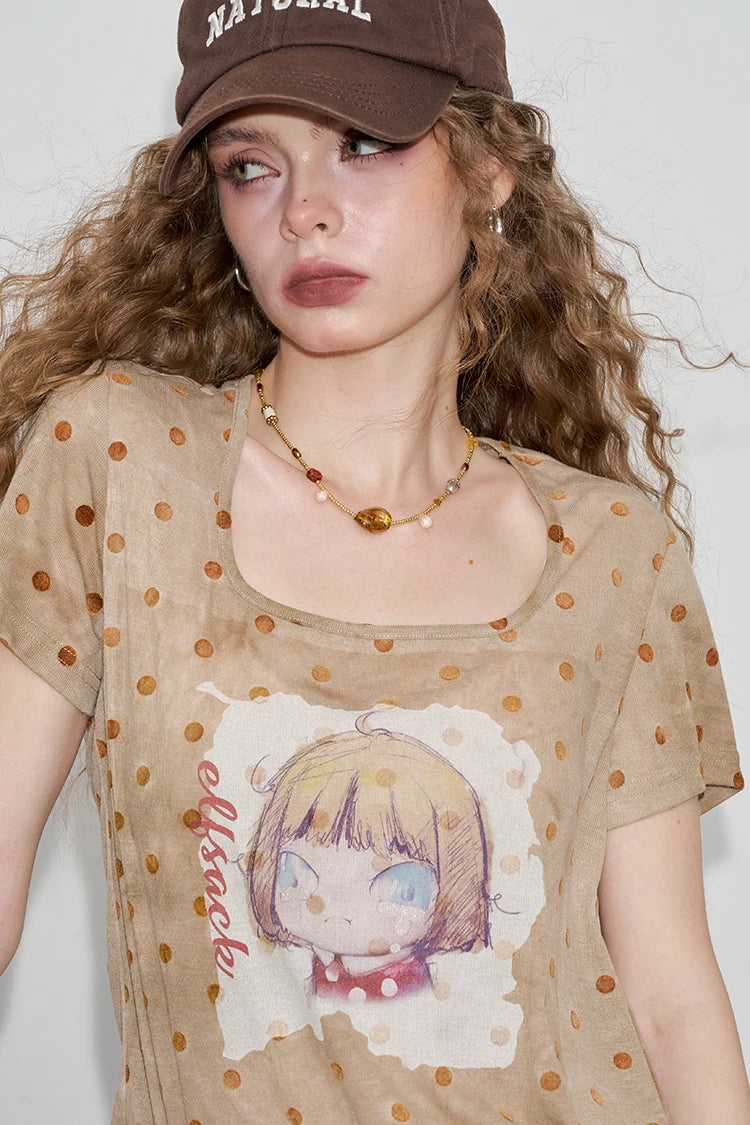 Polka Dot Cartoon Print T-Shirt