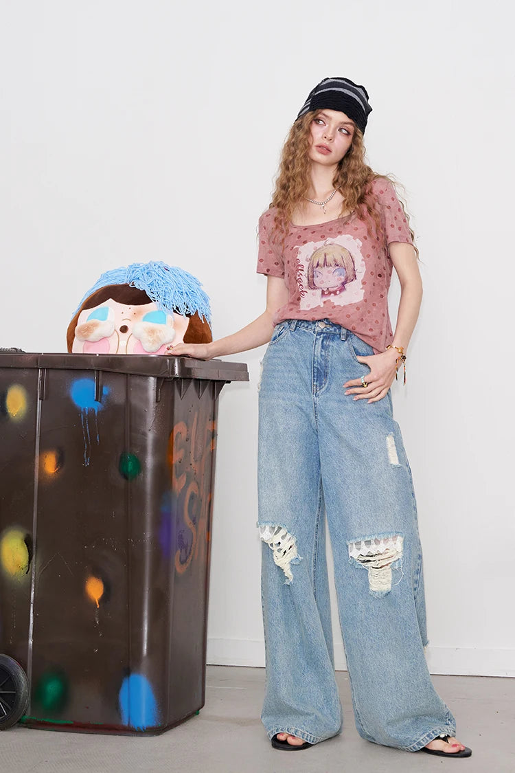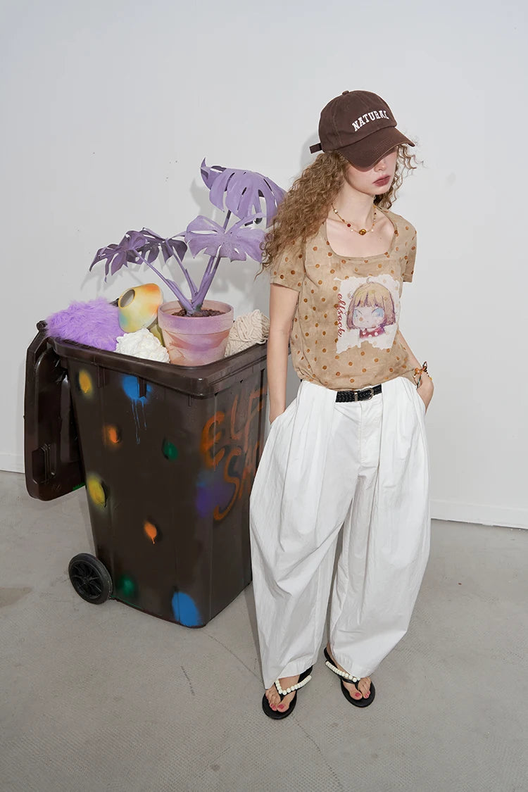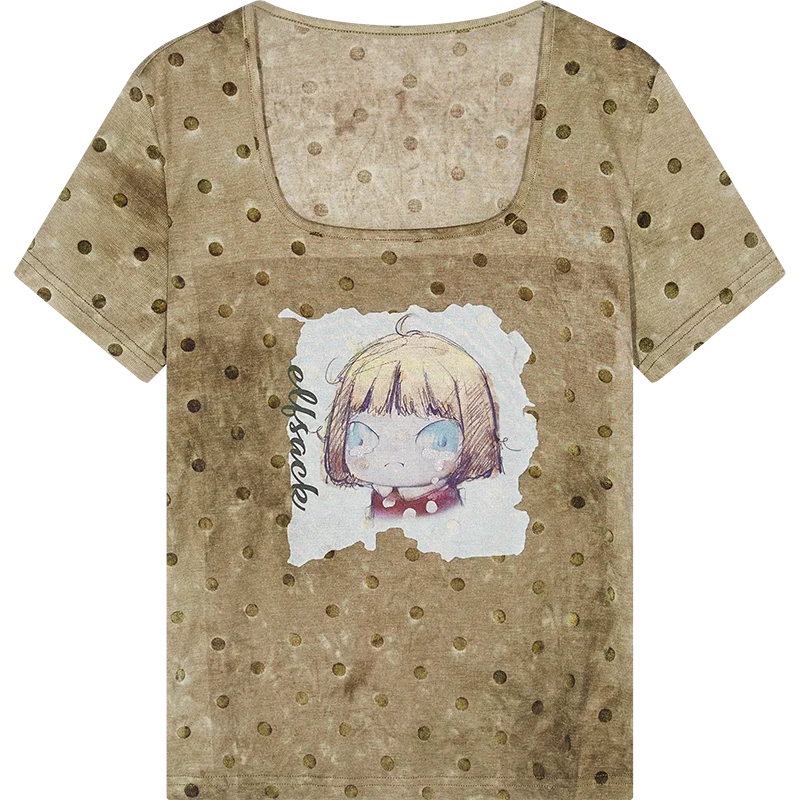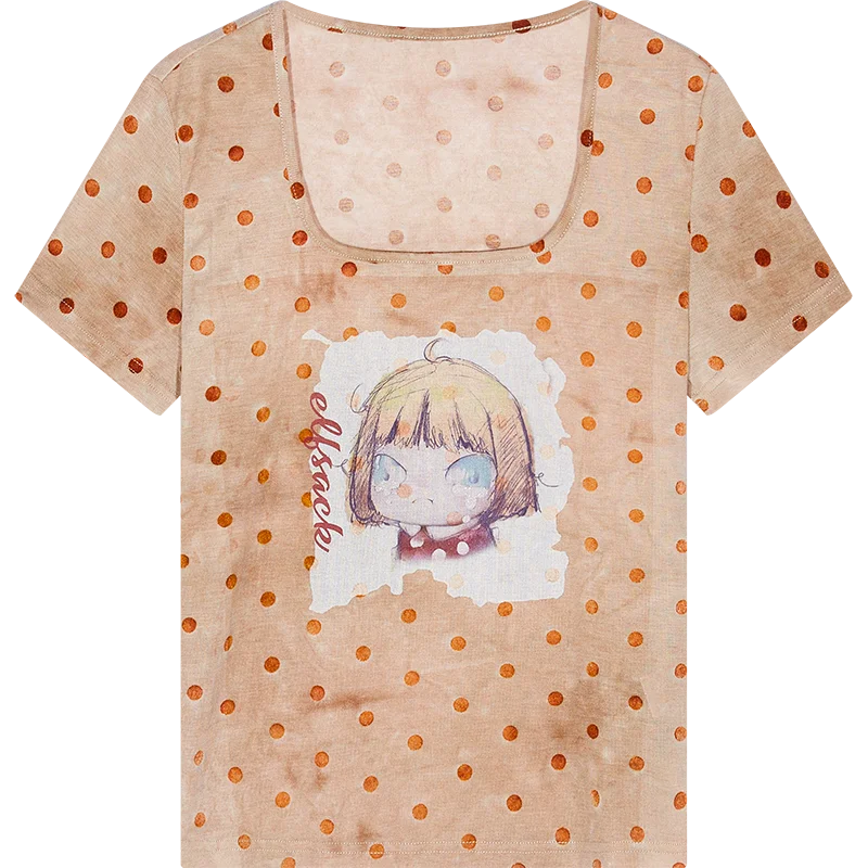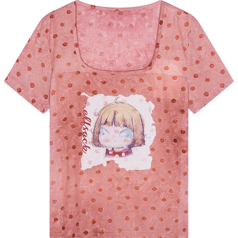 Polka Dot Cartoon Print T-Shirt