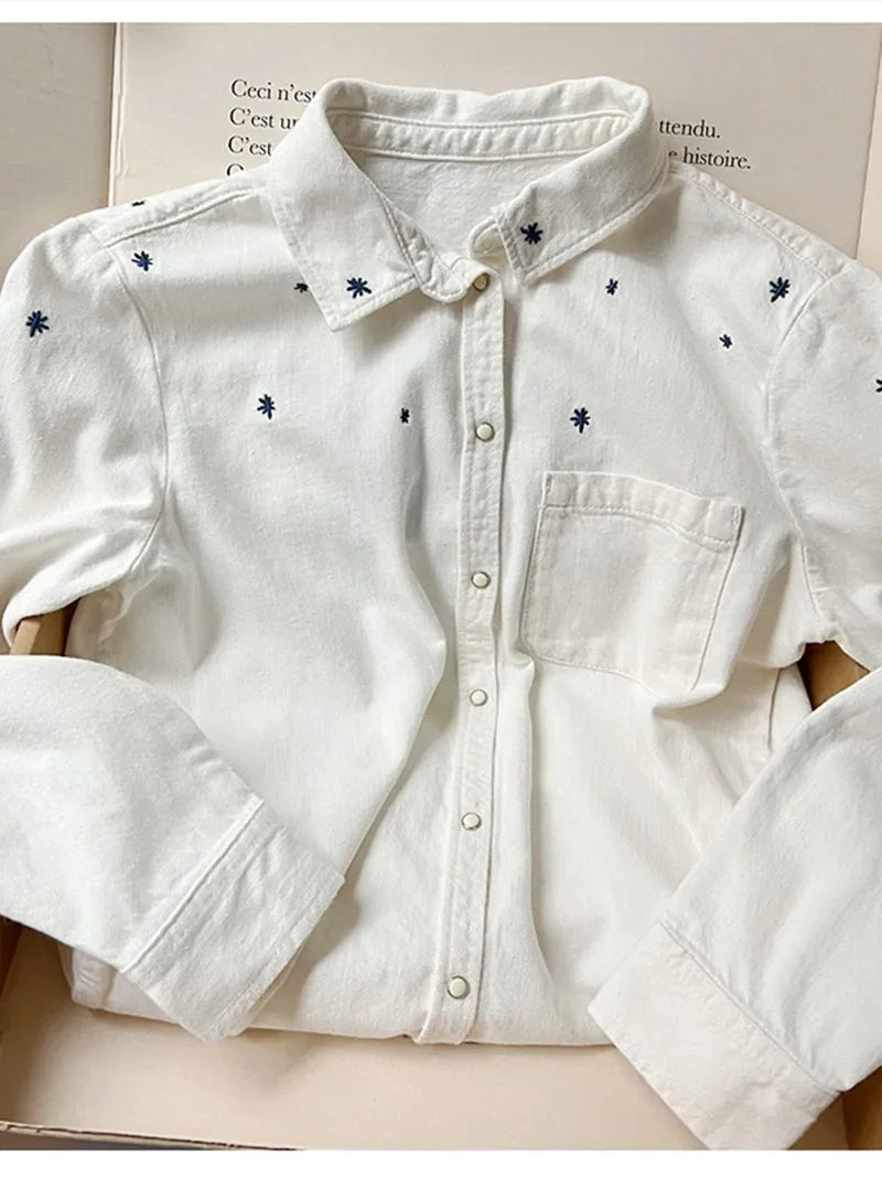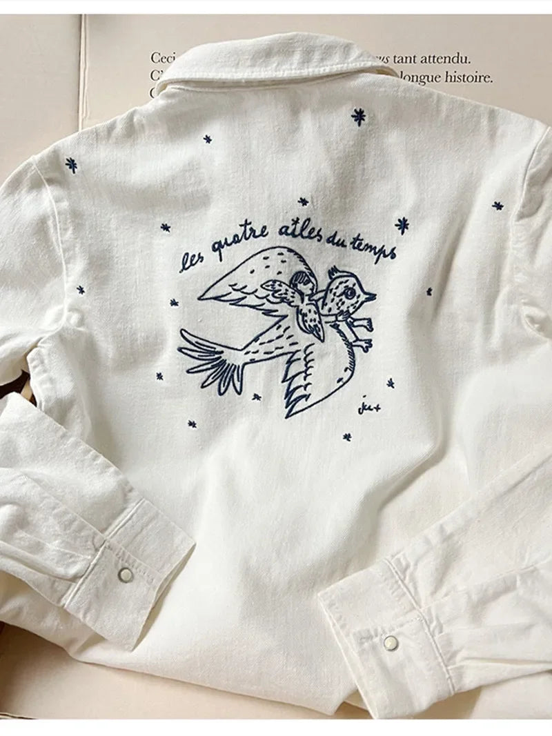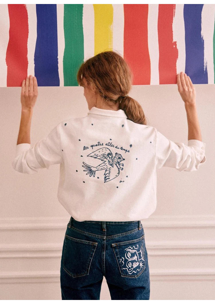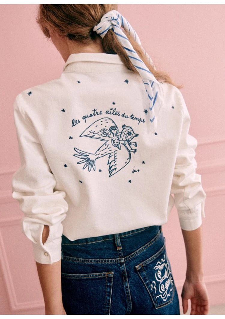 Retro Bird Embroidered Blouse