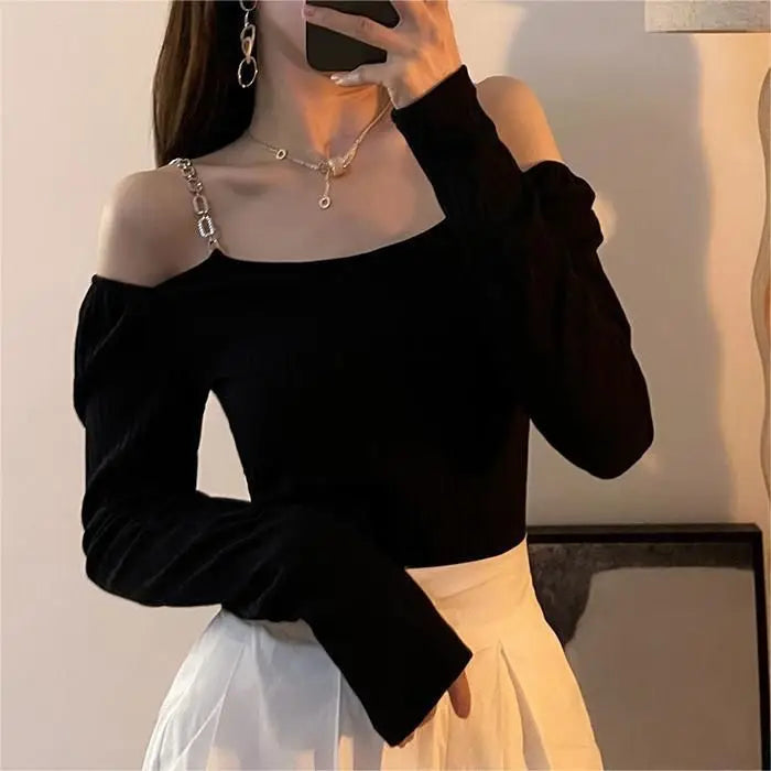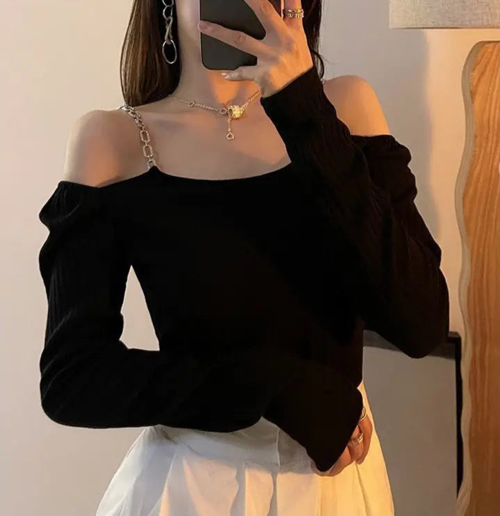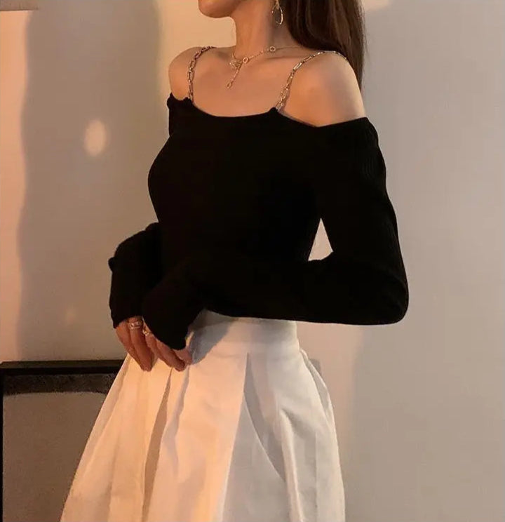 Sexy Off Shoulder Knitted Sling Sweater