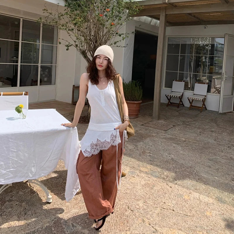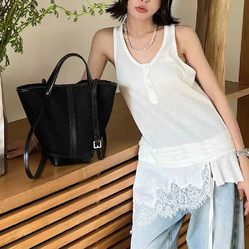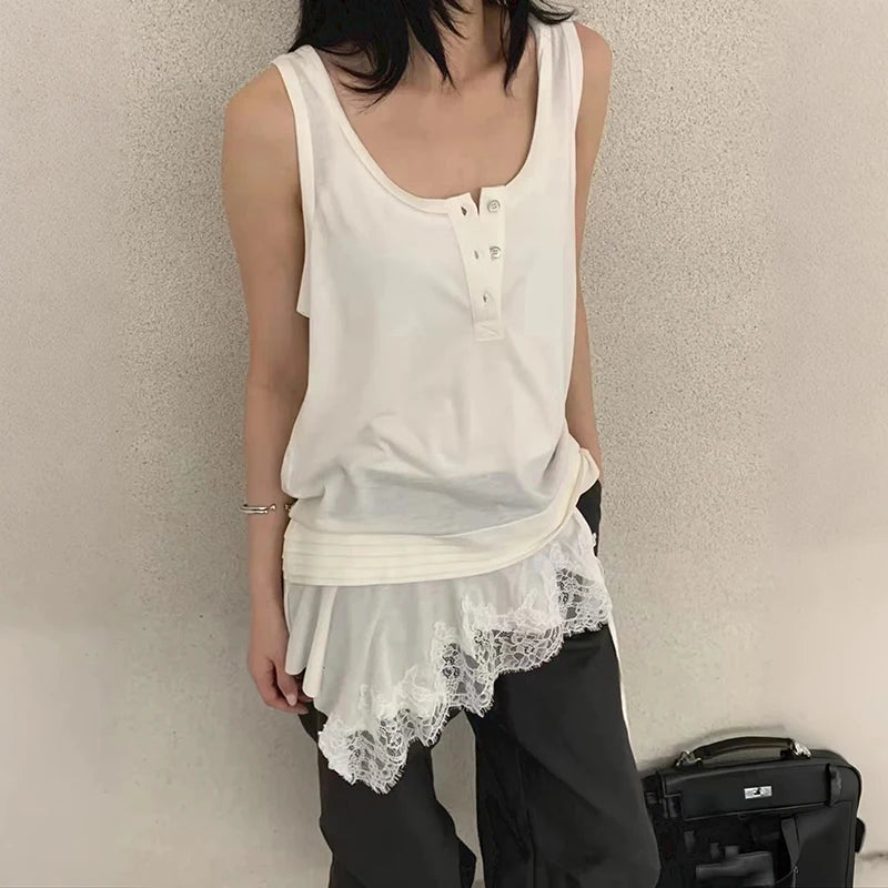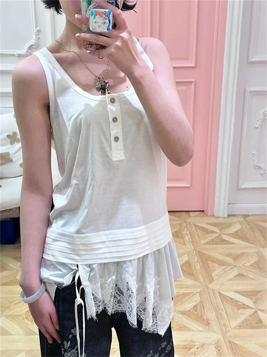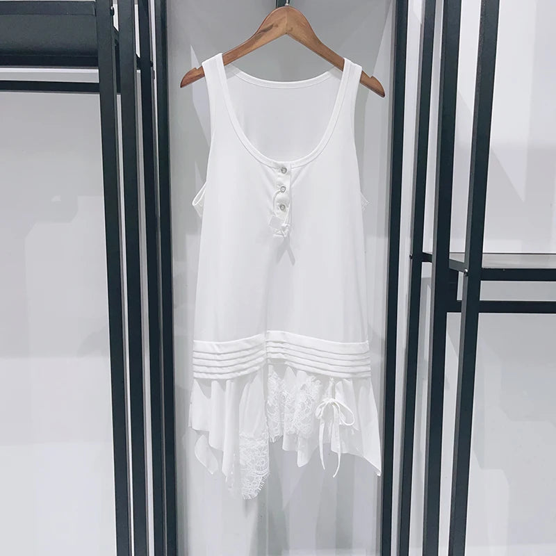 Sleeveless White Splicing Lace Blouse