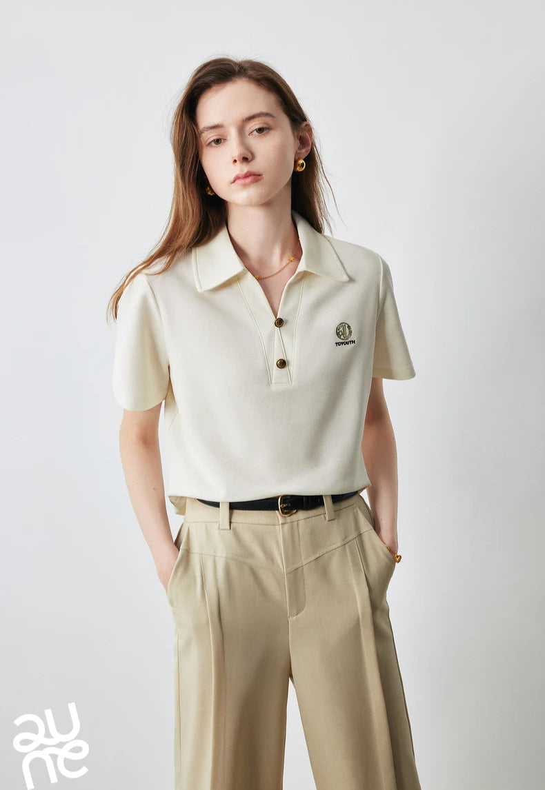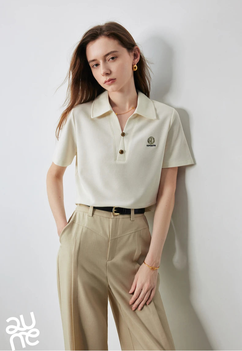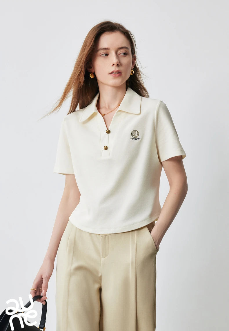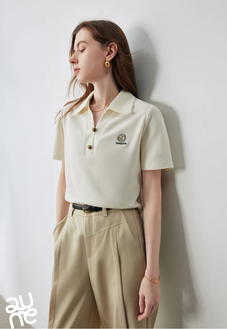 Stylish Women Polo Collar Letter T-Shirt