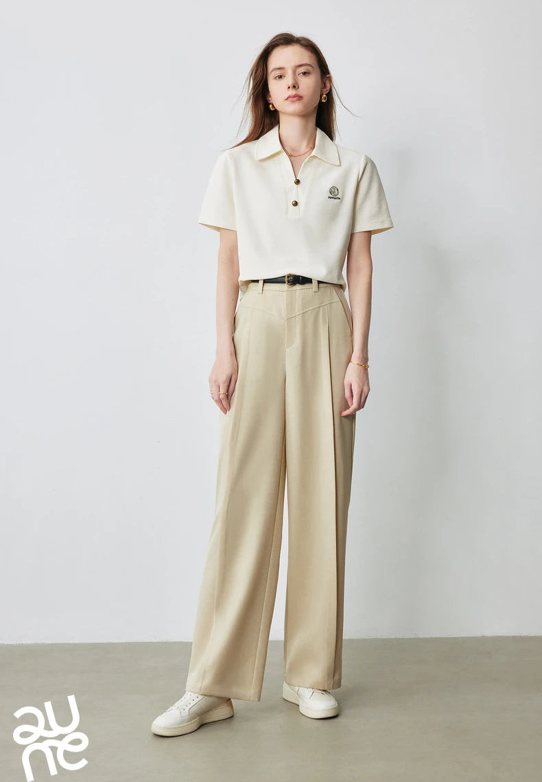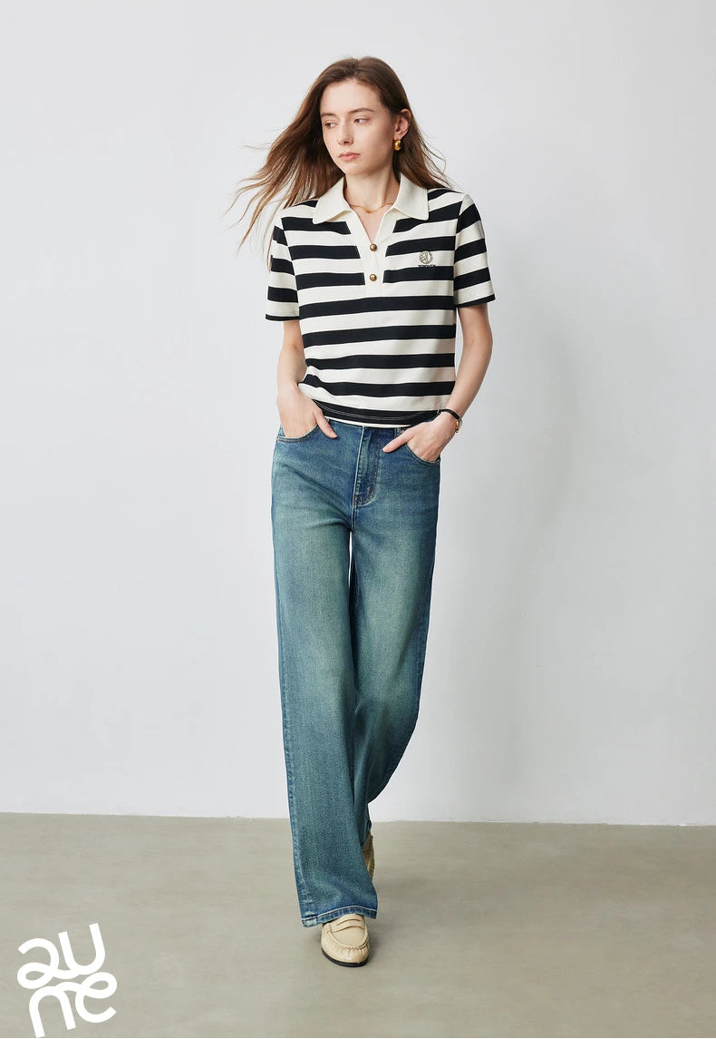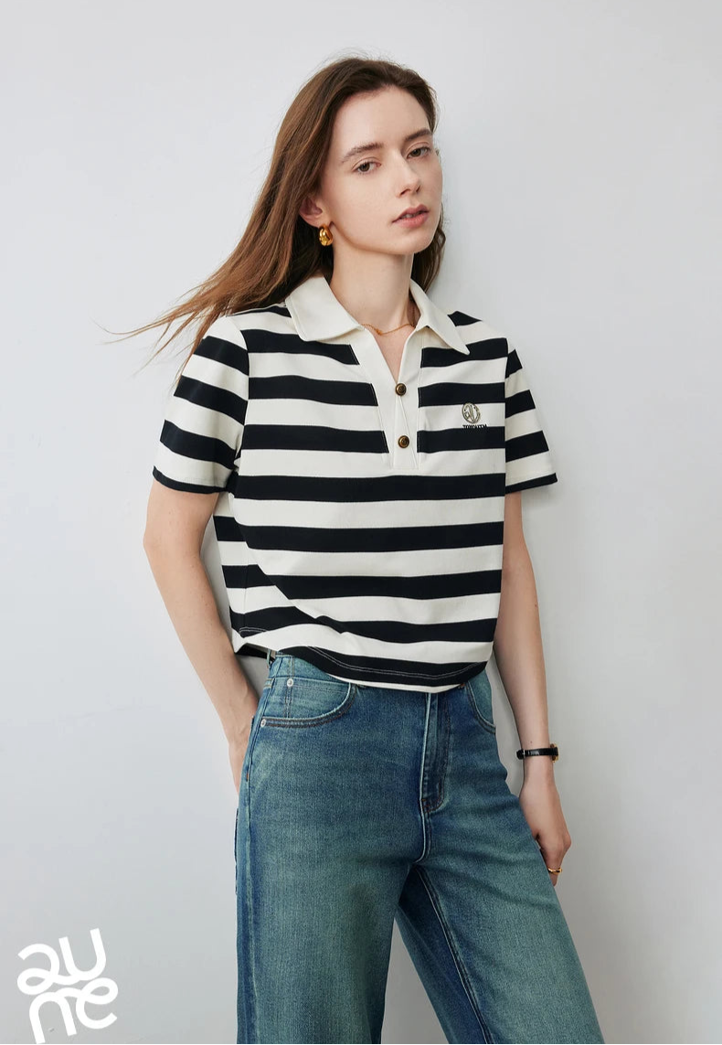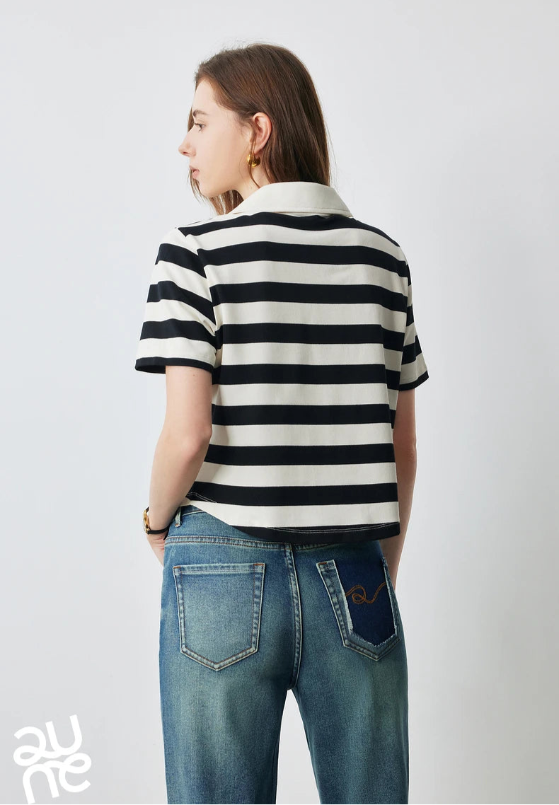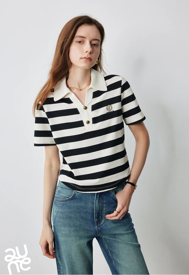 Stylish Women Polo Collar Letter T-Shirt
