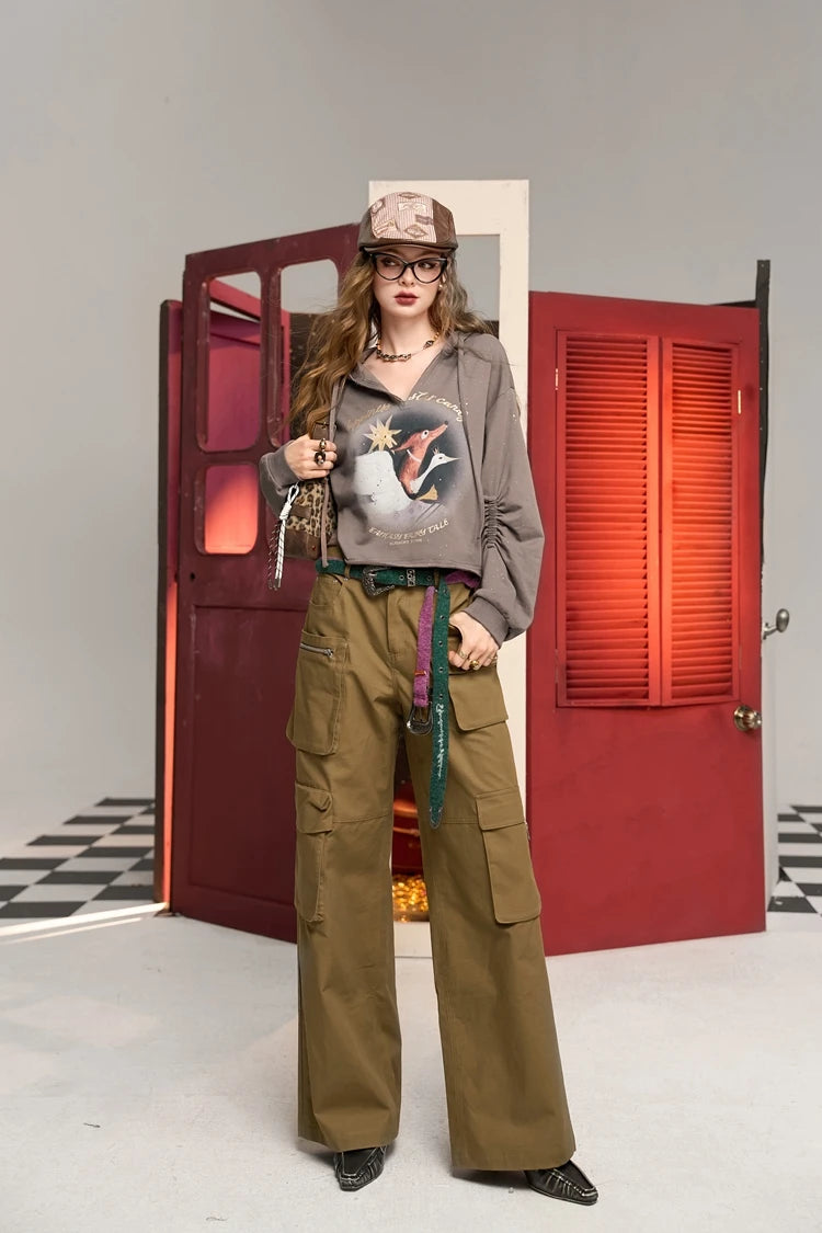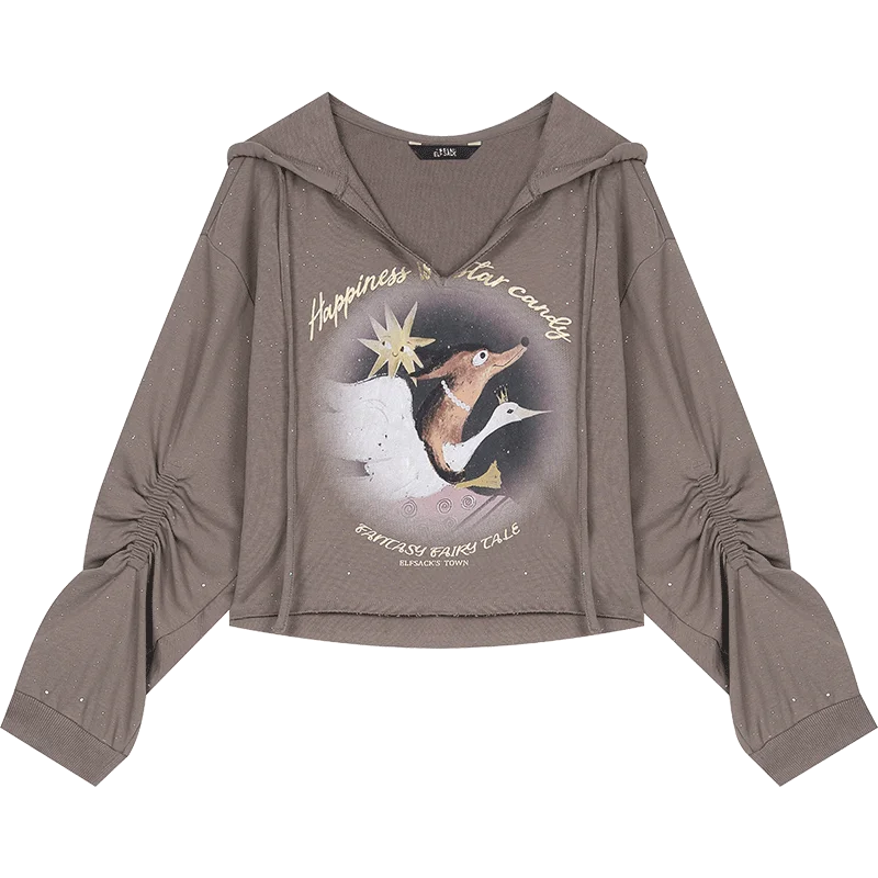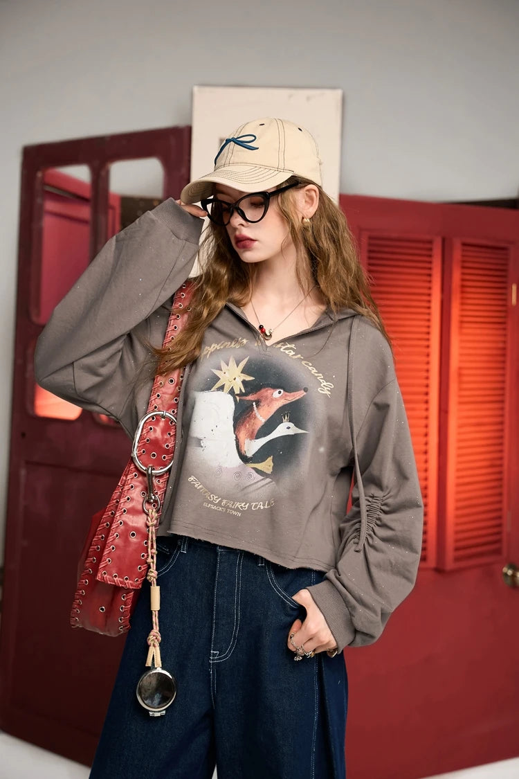 Vintage Fox Print V-Neck Hoodie