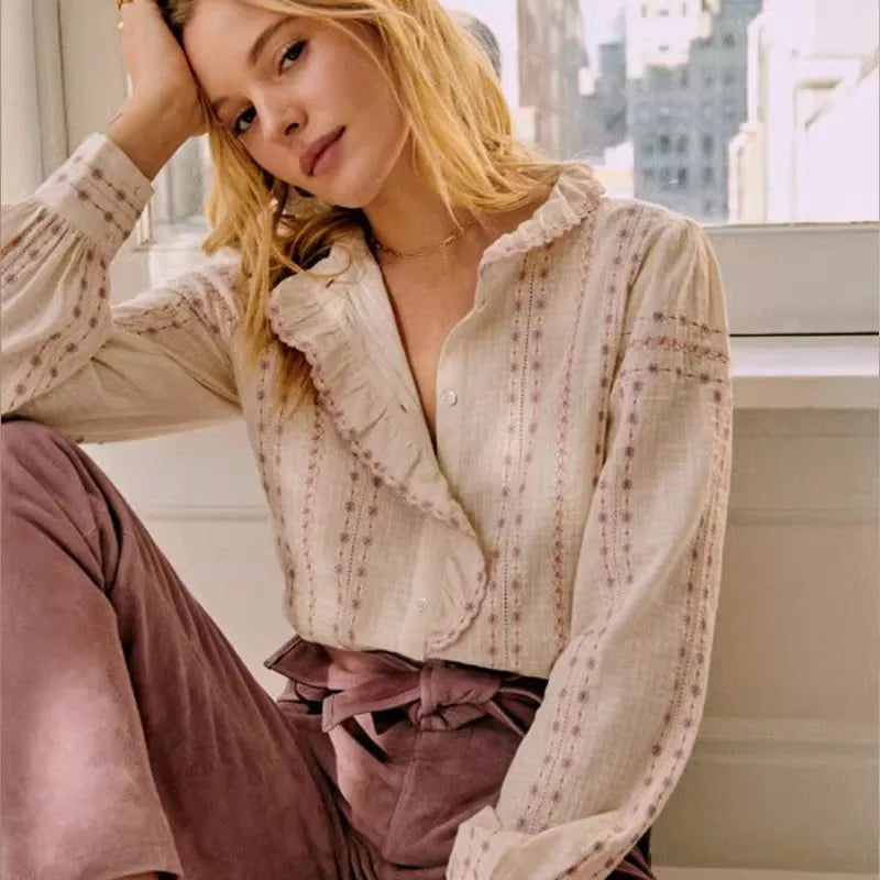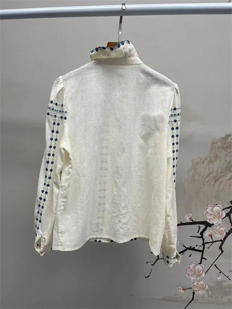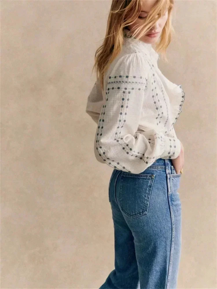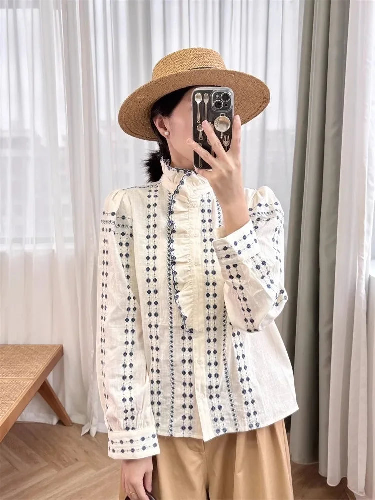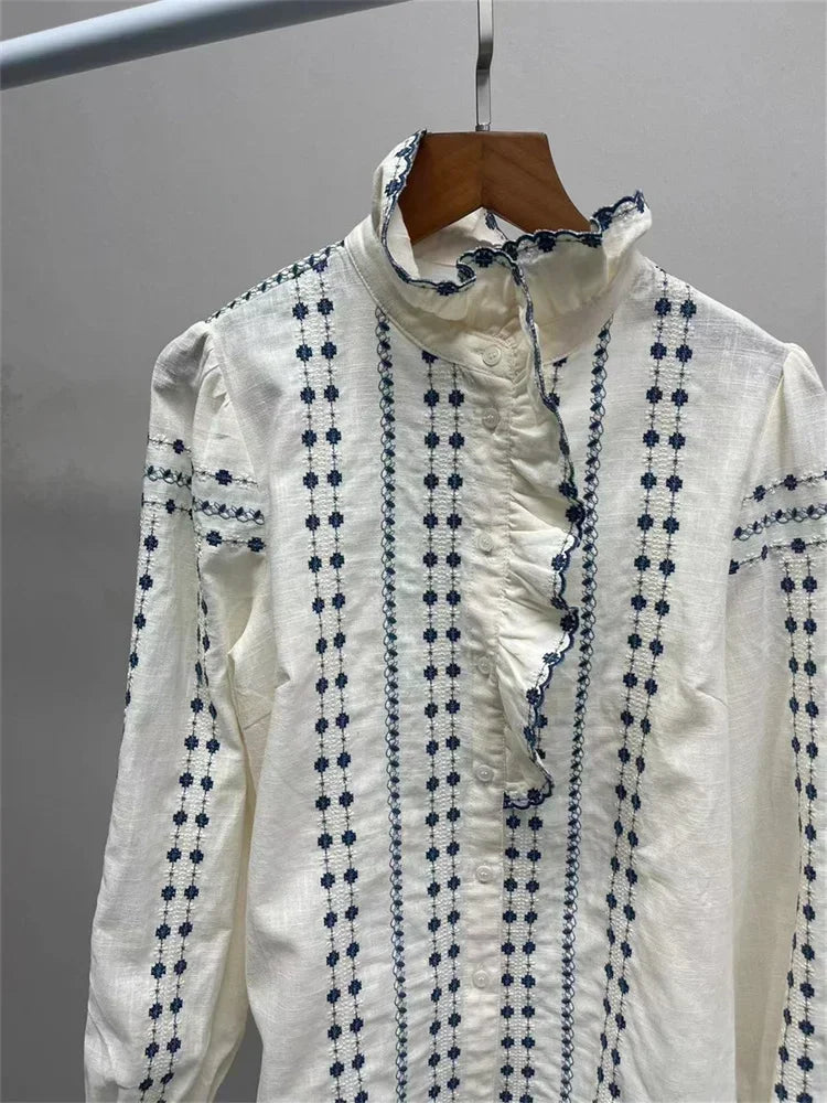 Vintage Ruffles Embroidery Blouse