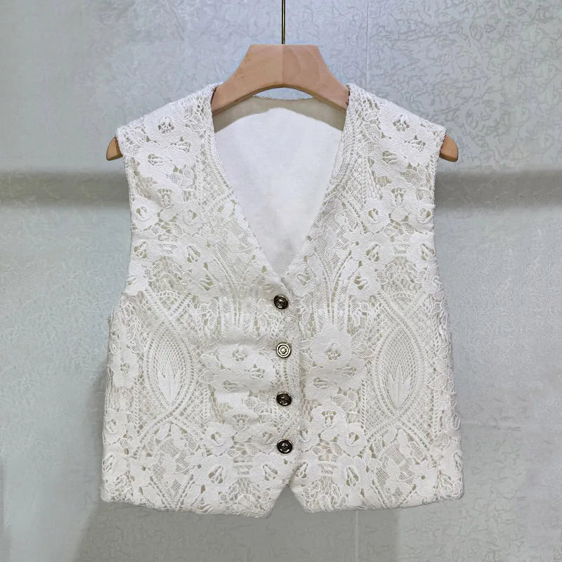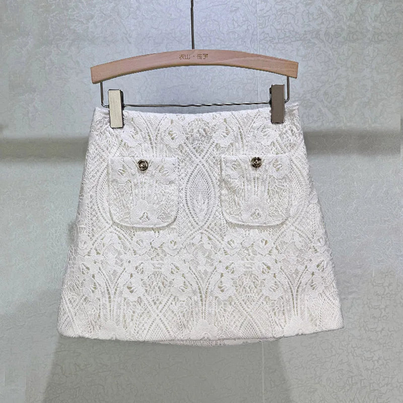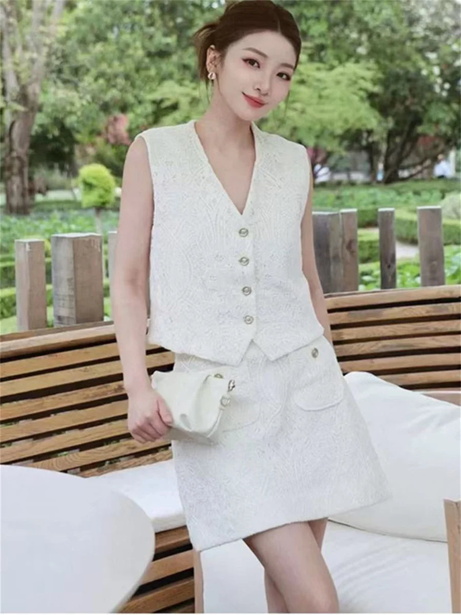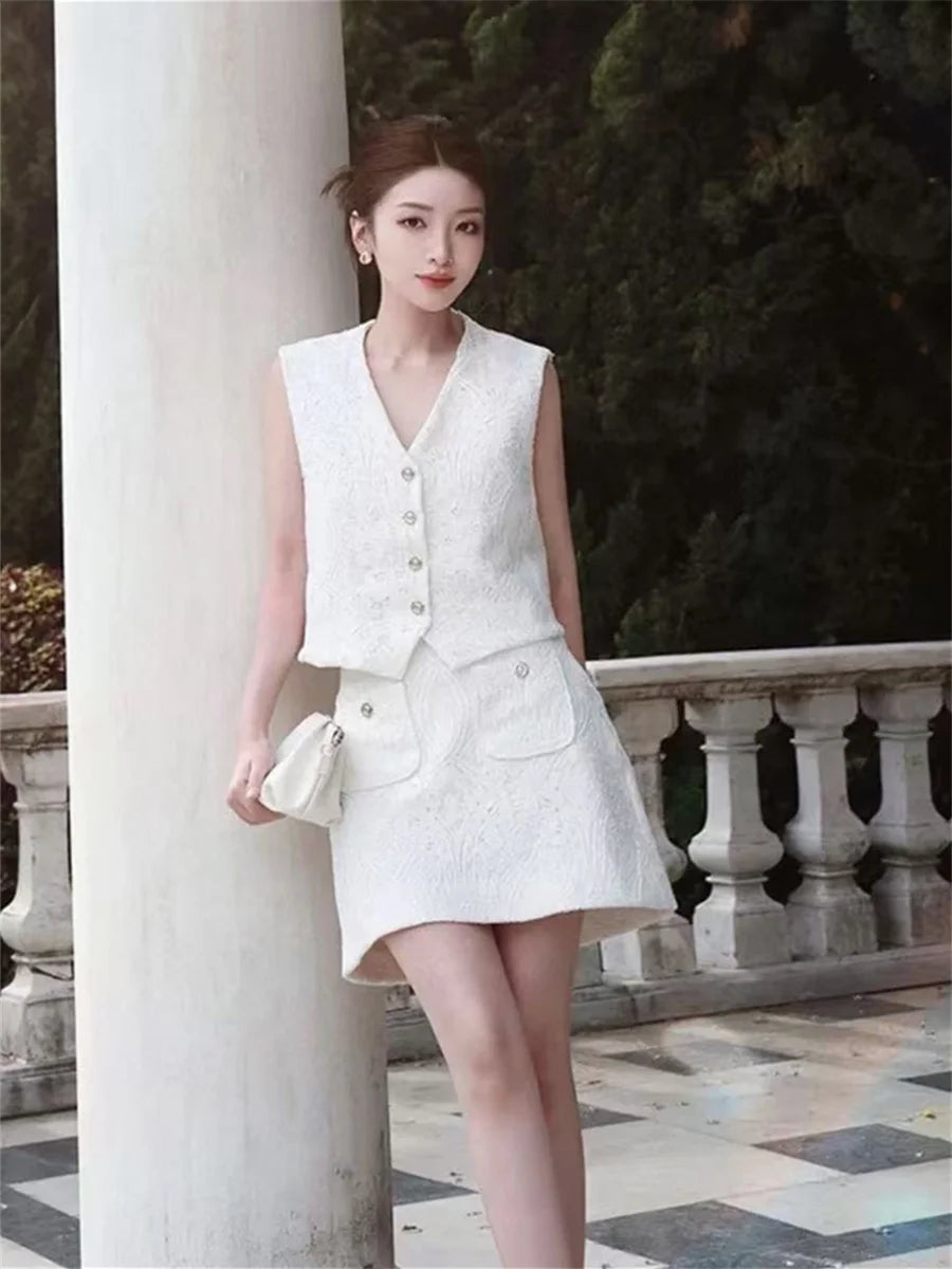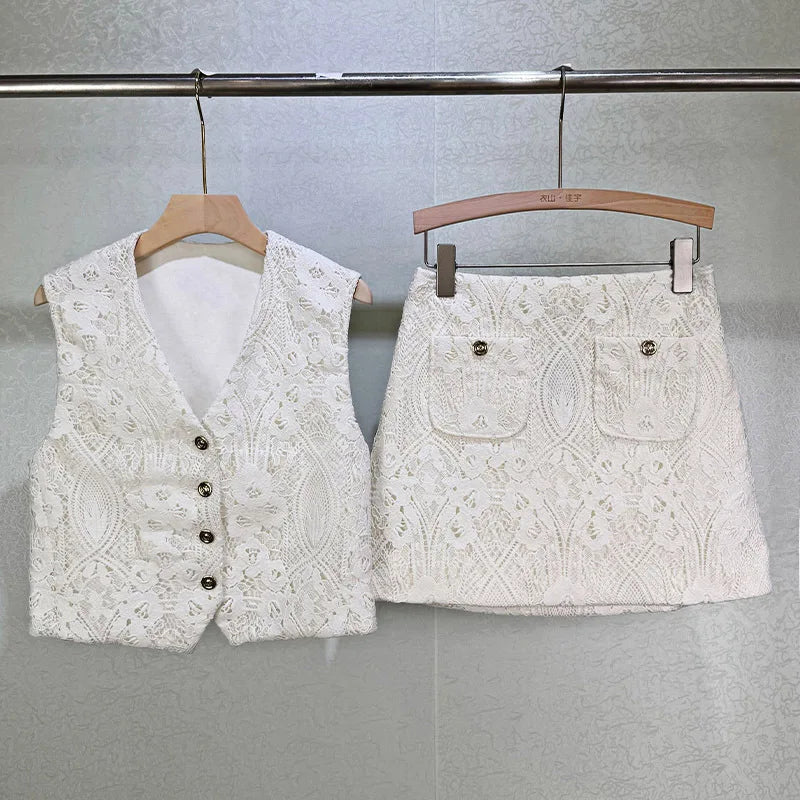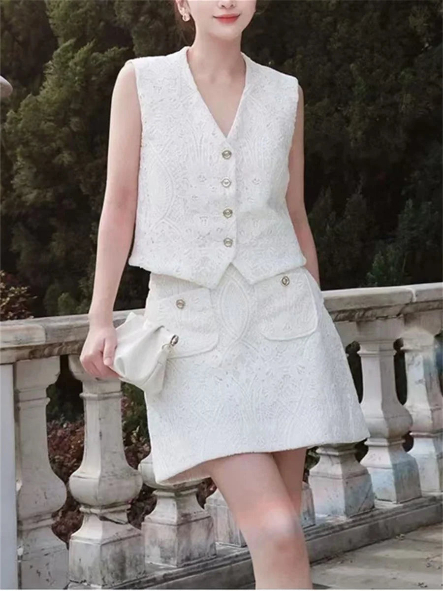 White Elegant Embroidered Vest & Mini Skirt Set