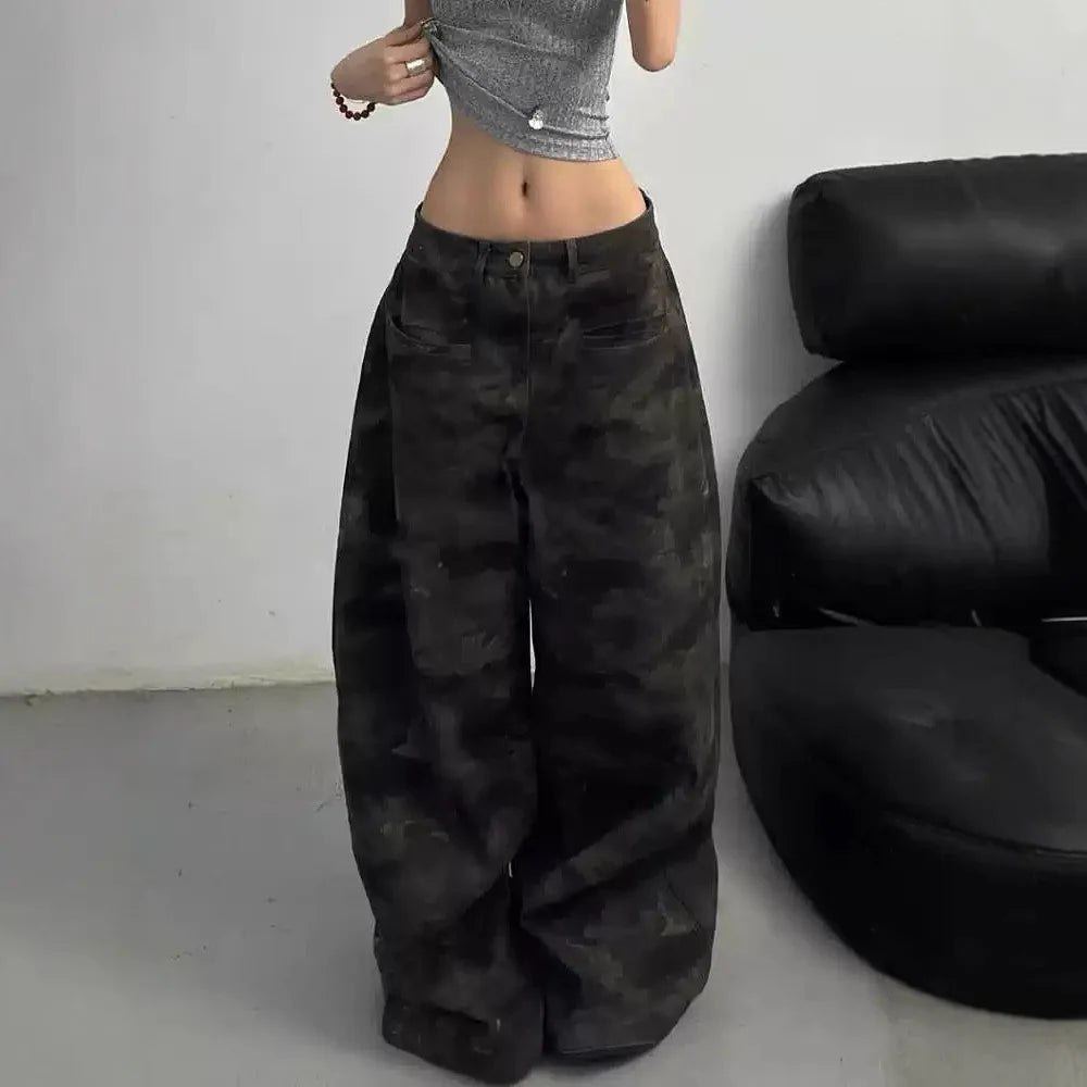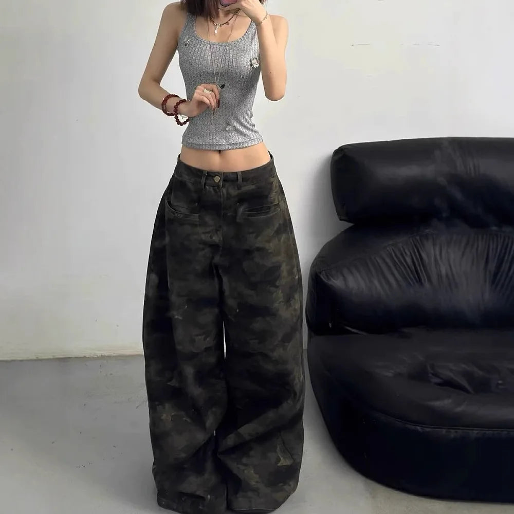Women American Camo Style Wide Leg Jeans
